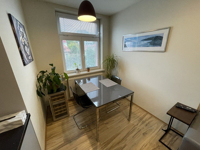 Kompletně zrenovovaný interiér. Kousek od trmvajových linek či stanice metra.
