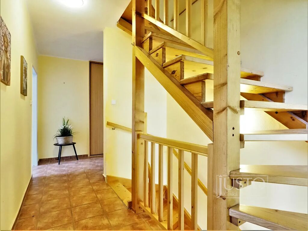 Dům je ve velmi pěkném zachovalém stavu. Dřevěné interiérové schodiště je pohodlné a zároveň působí vzdušně. Dům nemá zahradu, pouze předzahrádku, posezení či pěstování okrasných rostlin je možný na terase.