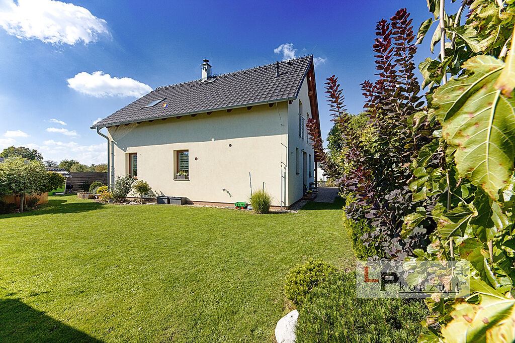 Rodinný dům o velikosti 5+KK (129m²) k nastěhování, stojí v oblíbené příměstské obci Dubany. Jedná se o zděný plně vybavený a dokončený RD, včetně zahrady (640m²) a venkovních úprav. Srdcem života v domě je velký obytný prostor s krbovou vložkou, jídelnou i kuchyní a přímým vstupem na krytou terasu s pergolou orientovanou na JZ. V přízemí je vhodně umístěn jeden pokoj - jako třeba ložnice na stáří. Na krásné zahradě se vzrostlou zelení využijete vrt na zalévání, dále zahradní domek, skleník, kryté stání pro auto včetně zámkové dlažby a samozřejmostí je také automatická vjezdová brána. Dům je vybaven krb. vložkou s rozvodem vzduchu a především podlahovým topením s plynovým kotlem. V podkroví kombinace s radiátory. S čistotou v domě pomůže centrální vysavač. Okna jsou trojskla, fasáda zateplena šedým polystyrenem. Jak vidíte, o tepelný komfort a náklady na vytápění se strachovat rozhodně nebudete.
