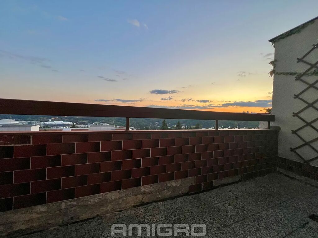Z terasy je krásný výhled na brněnské výstavistě, okolní lesy, Nový Lískovec, Kohoutovice.