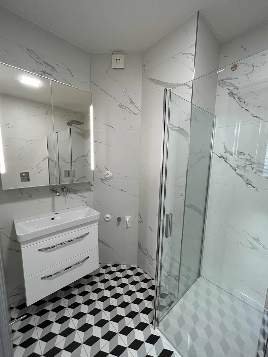 Byt je částečně zařízený a nabízí plně vybavenou kuchyňskou linku, stylový mramorový konferenční stolek, pohovku, dvě pohodlná křesla, jídelní stůl se čtyřmi židlemi, prostorný pracovní stůl a rám postel. Pračka a matrace nejsou součástí vybavení, ale mohou být dodány na požádání.