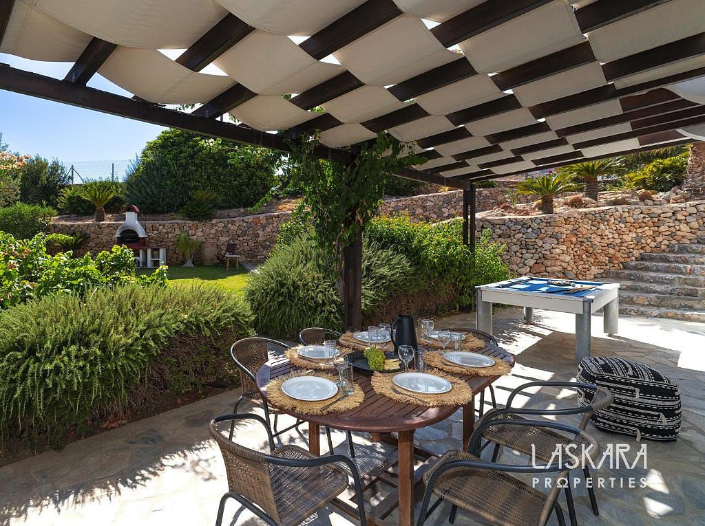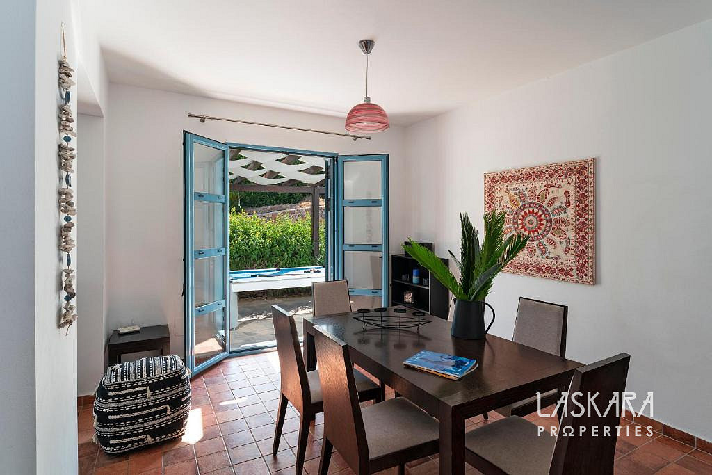 Každý detail této nemovitosti nese rukopis středomořského klidu a autenticity. Zralé olivovníky a bugenvilie rámují kamenité cesty vedoucí do zahrady, kde se třpytí soukromý bazén obklopený zelení a kamennými zídkami. Večery zde voní mořem a rozkvetlým jasmínem, zatímco terasa nabízí pohled na západy slunce, které proměňují oblohu v tóny zlata a purpuru.