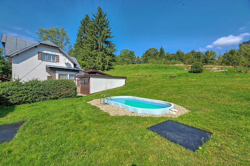 Exklusivně nabízíme k prodeji velmi pěknou chalupu určenou k celoročnímu užívání v Albrechticích v Jizerských horách, Mariánská hora na pozemku o velikosti 1522m2. Jedná se o zděný objekt dispozice 4+1 se sklepem a terasou o celkové užitné ploše cca.140m2(sklep a terasa není započítána do užitné plochy domu). Dům má k dispozici čtyři koupelny a čtyři WC. Jedná se o plně funkční objekt bez nutnosti oprav, či rekonstrukcí. Voda je zajištěna z vrtané studny(60m), odpad je sveden do tříkomorové čističky OV, vytápění je zajištěno elektrickými přímotopy. Na pozemku se nachází rovněž garáž(19m2) a dvě venkovní parkovací stání. Na zahradě je menší bazén. Dům se nachází v krásném prostředí směrem na Mariánskou horu, kde díky své poloze poskytne budoucím vlastníkům klid, avšak s velmi dobrou dostupností na okolní lanovky a vleky. V lokalitě se nachází areál Špičák, Světlý vrch v létě pak je zde možné provozovat pěší turismus a cyklovýlety po trasách Jizerské 50.