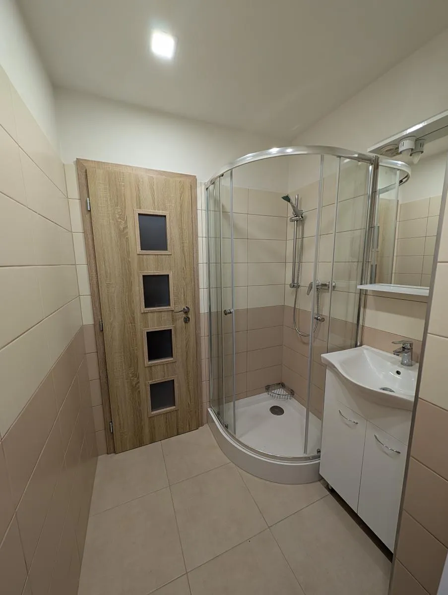 Byt prošel rekonstrukcí a nabízí čisté a klidné bydlení s výhledem do zeleně. Interiér tvoří obytný prostor s kuchyňským koutem, samostatná ložnice, koupelna s toaletou a předsíň. Kuchyňská linka je vybavena sklokeramickou deskou, troubou, mikrovlnnou troubou, digestoří a lednicí. Byt se pronajímá částečně vybavený součástí je postel a skříň.