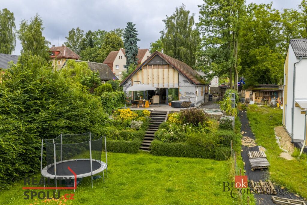 Terasa a zahrada 728 m² – prostor pro klientské akce, odpočinek nebo firemní teambuildingy.