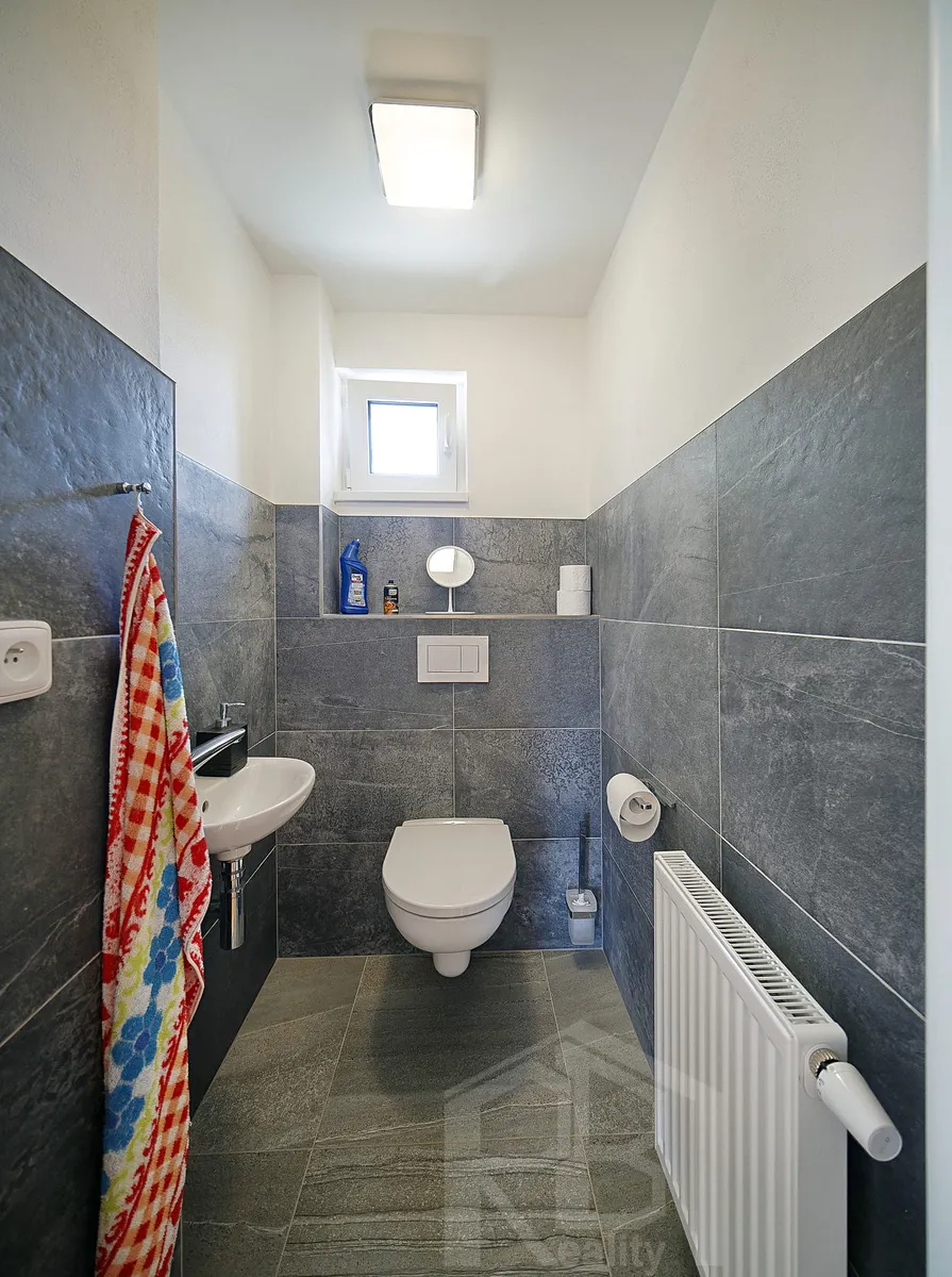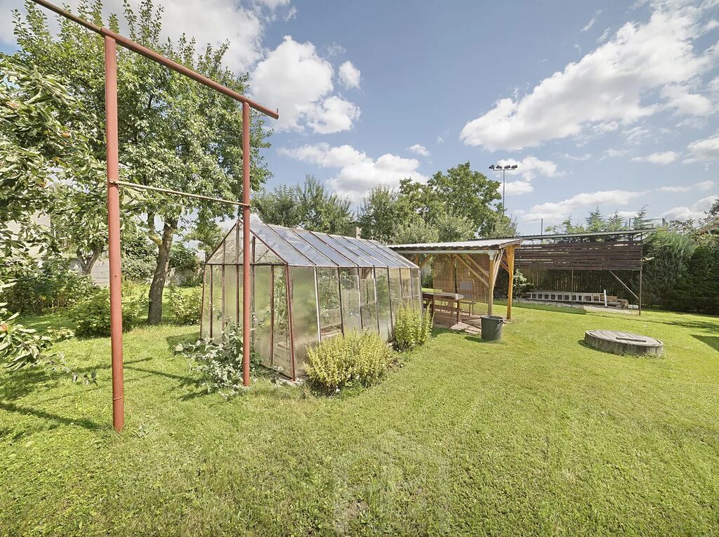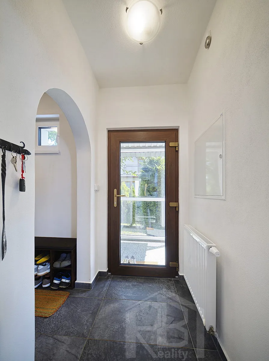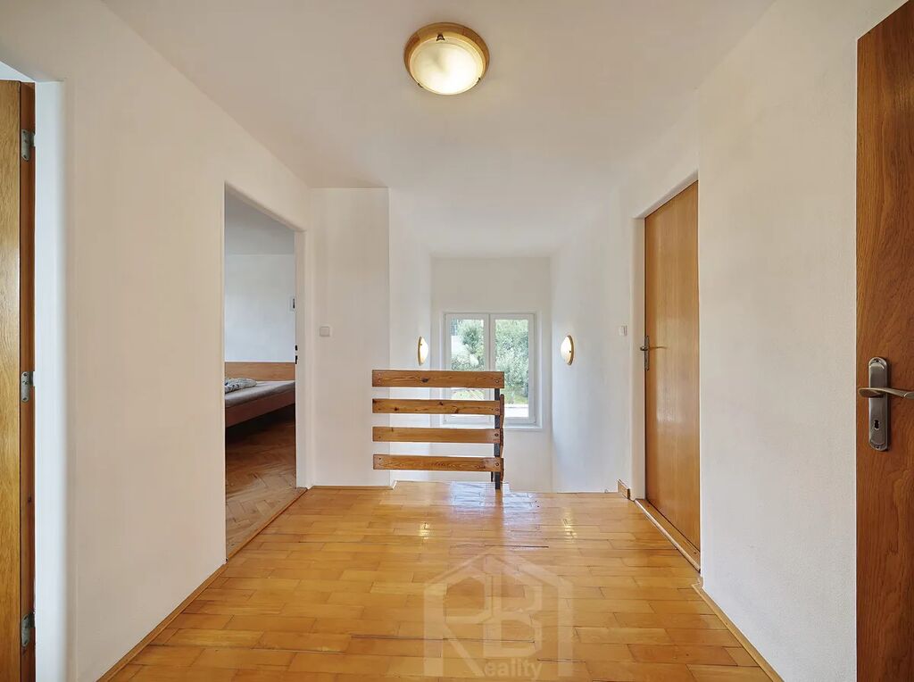 Pronájem velmi pěkně zmodernizovaného rodinného domu velikosti 4+1. Dům je podsklepený, v suterénu je k dispozici i sauna. V přízemí je vstupní zádveří, chodba, velký obývací pokoj propojený s kuchyní, koupelna, záchod, schody do suterénu a do patra. V patře jsou 3 pokoje a záchod s umyvadlem. K domu je přistavěná garáž, sloužící jako sklad a její zadní část je v současné době užívaná jako společenská místnost. Na auto je k dispozici zastřešené parkovací stání. V zahradě je dále kolna, skleník a studna na zalévání. Dům je zateplený a má plastová okna. Vytápění je ústřední s plynovým kotlem, sloužícím též k ohřevu vody, v obývacím pokoji je k dispozici krb.