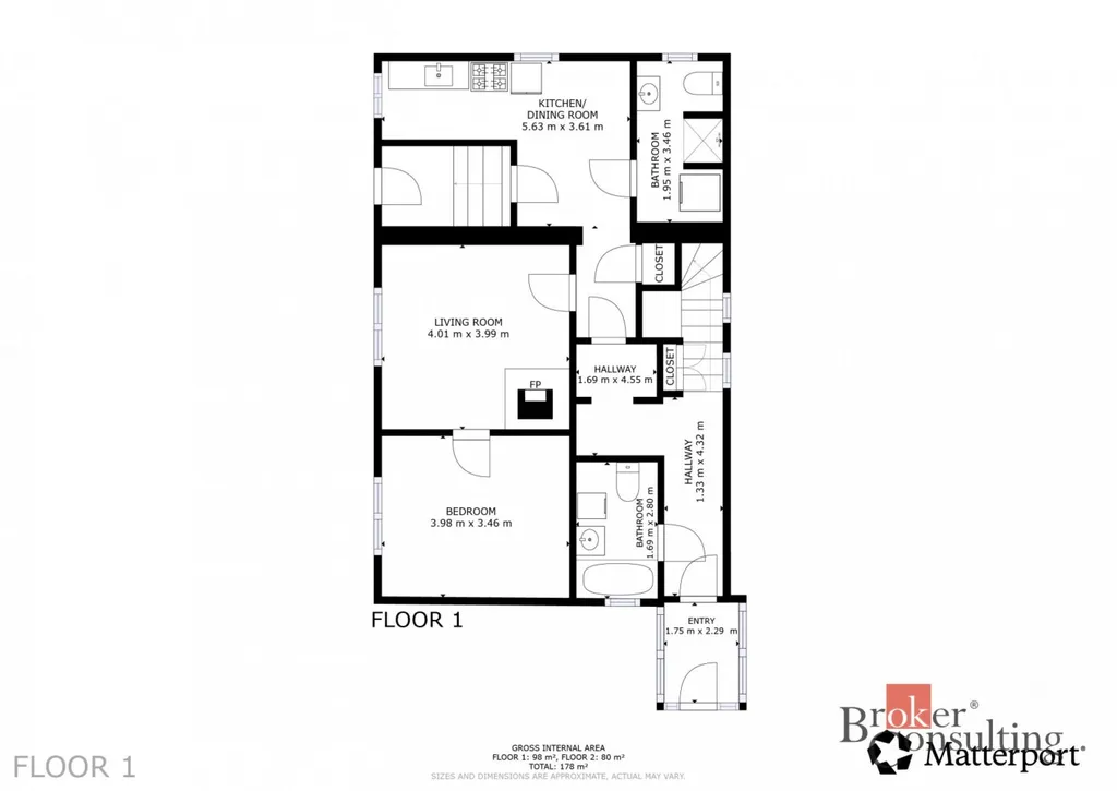 V přízemí se nachází vstupní chodba, dvě koupelny se sprchovým koutem a WC, kuchyň s jídelním koutem, obývací pokoj a ložnice. Ve 2. nadzemním podlaží je menší chodba, další ložnice, kuchyň a obývací pokoj. Dům je částečně podsklepený.