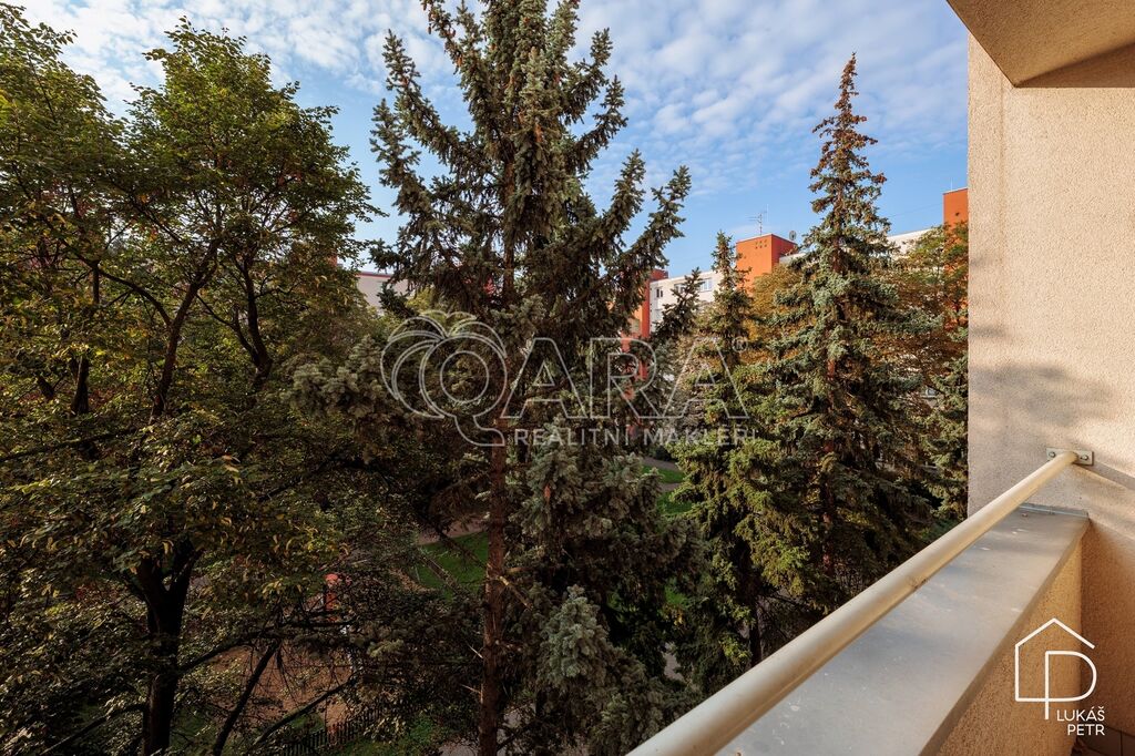 Součástí bytu je lodžie o velikosti 2,6 m² orientovaná do klidného vnitrobloku se zelení a sklepní kóje v suterénu.