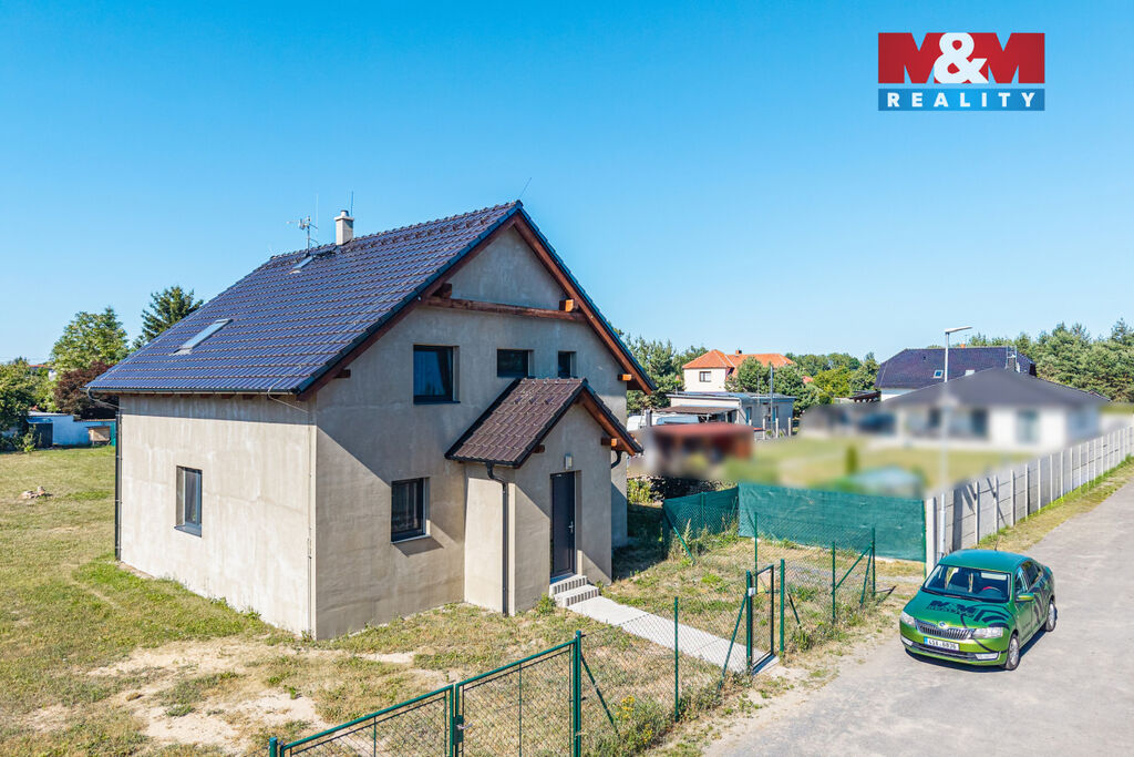 Hledáte moderní a úsporné bydlení v příjemném prostředí nedaleko Prahy? Nabízíme k prodeji novostavbu rodinného domu o dispozici 5+kk s užitnou plochou 127 m², která se nachází na rozlehlém pozemku o velikosti 1 019 m² v obci Písty u Nymburka. Dům byl zkolaudován v roce 2023 a splňuje všechny požadavky na komfortní, energeticky úsporné bydlení – energetická třída B. V přízemí se nachází prostorná vstupní hala s úložnými prostory, pracovna nebo pokoj pro hosty, technická místnost se sprchovým koutem, samostatné WC, sklad a především světlý obývací pokoj s krbovými kamny, který plynule navazuje na moderní kuchyň, jídelnu a vstup na slunnou terasu a zahradu. V patře najdete hlavní ložnici s výhledem do zahrady, dva dětské pokoje a koupelnu s vanou a toaletou. Dům je vytápěn elektrokotlem a krbovými kamny, což v kombinaci s kvalitní izolací zajišťuje nízké měsíční náklady na provoz. Na pozemku je vlastní studna s užitkovou vodou. Lokalita je ideální pro rodiny s dětmi a milovníky klidu.