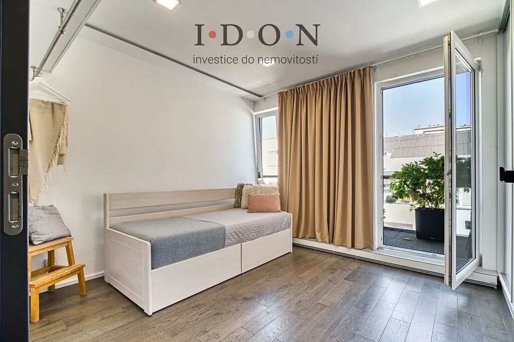 Dominantou obývacího prostoru jsou stylová krbová kamna, která vytvářejí útulnou atmosféru v zimních měsících. Komfort bydlení zajišťuje také podlahové topení v celém bytě. K bytu náleží prostorná terasa, ideální pro relaxaci. Šesté nadzemní podlaží zajišťuje nádherný výhled, osobní výtah je samozřejmostí.