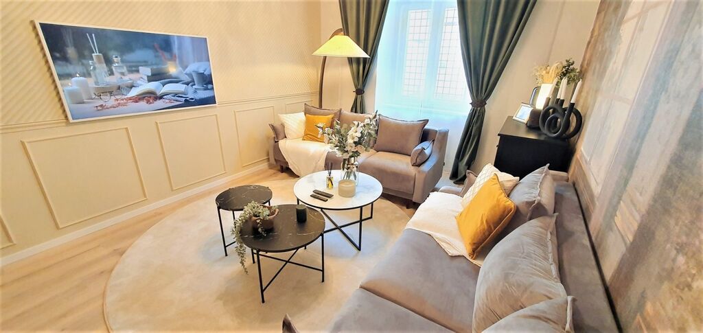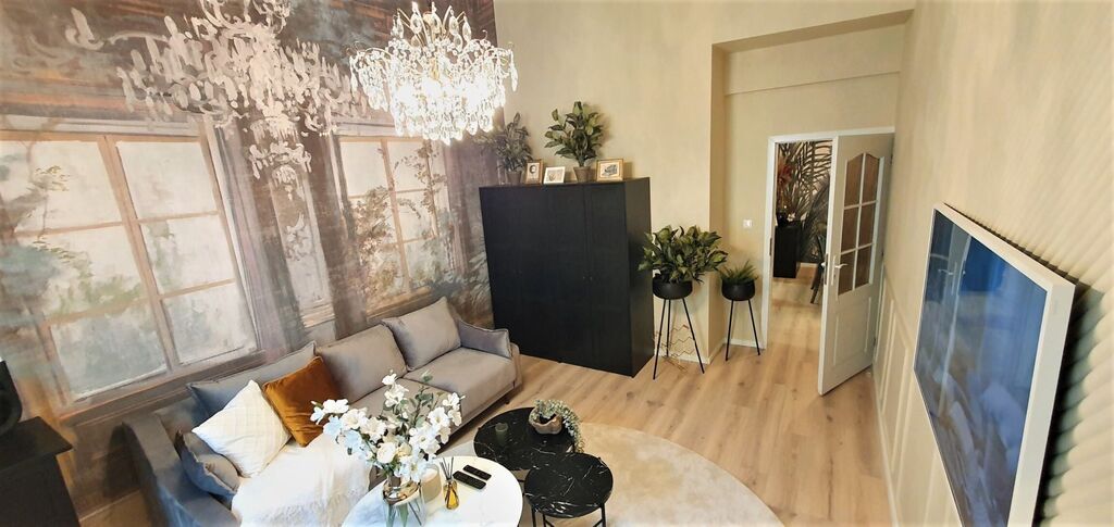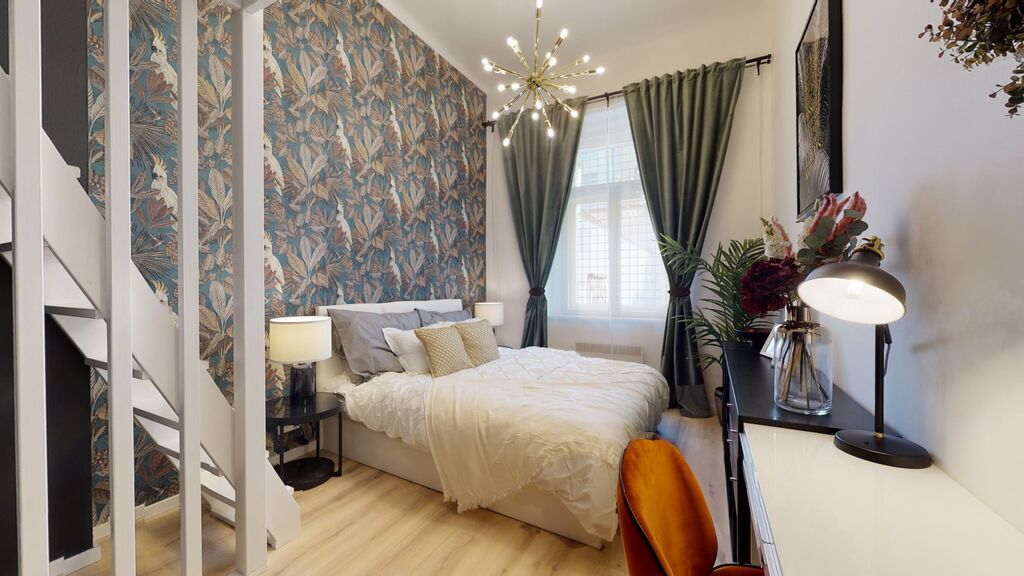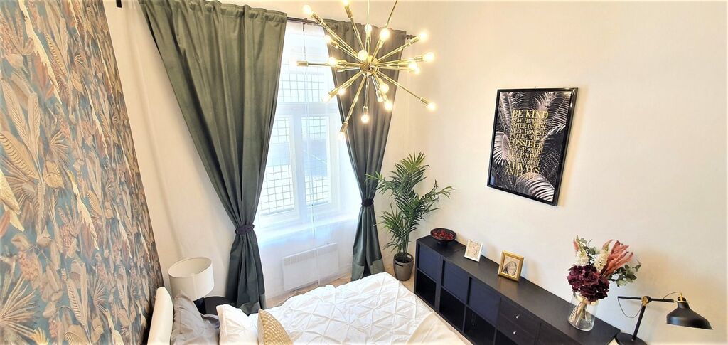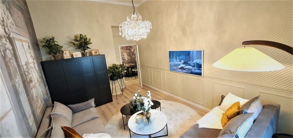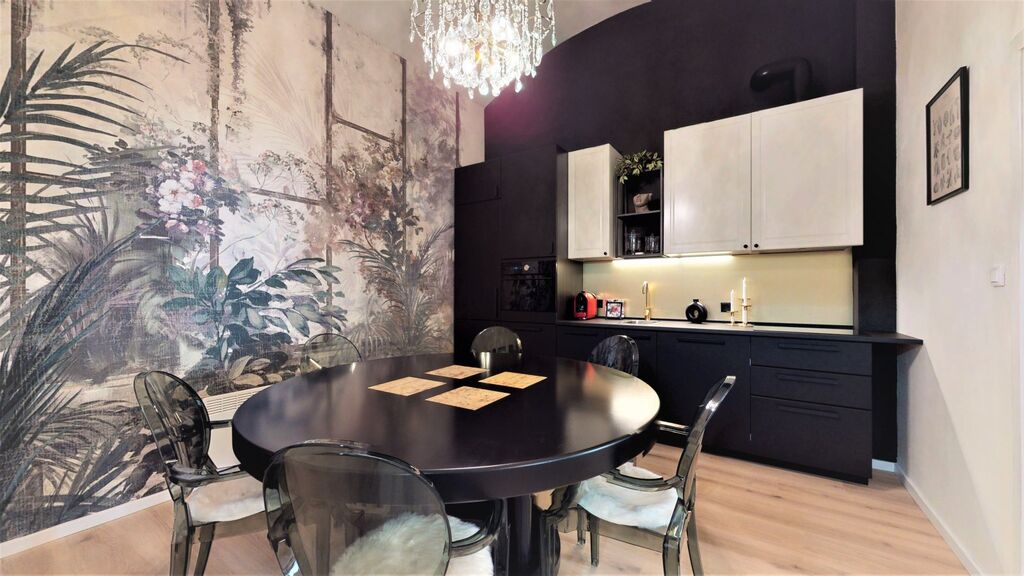 Bytová jednotka byla v roce 2022 navržena architektem a vybavena luxusními a moderními prvky. Byt má zděné jádro, nová dvoudílná dřevěná okna, mohutné vysoké stropy, na podlaze jsou vinylové podlahy, v koupelně a v chodbě dlažba, nové rozvody vody v plastu a elektřiny v mědi.