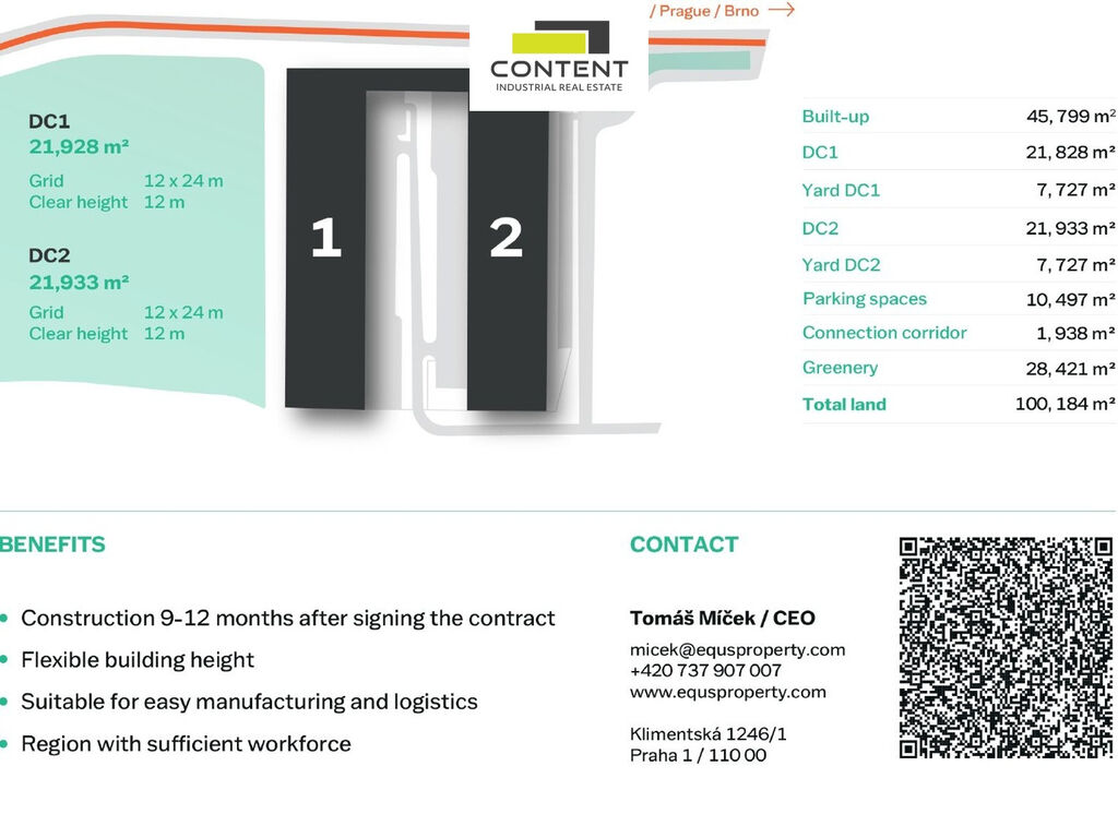 - komerční park je umístěný 18 km od exitu č. 90 dálnice D1