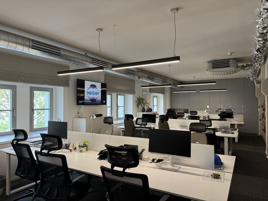 Nabízíme k pronájmu prostorné a moderně vybavené kanceláře o celkové ploše 275 m² v prestižní lokalitě Prahy 10 – Vinohrady, ulice Korunní. Prostory se nacházejí v reprezentativní budově po kompletní rekonstrukci a splňují vysoký standard pro moderní kancelářské využití. K dispozici je open space o velikosti 143 m², čtyři prostorné zasedací místnosti s celkovou výměrou 75 m², archiv či kancelář o velikosti 15 m², kuchyň s jídelnou 10 m², dámské sociální zařízení 14 m², pánské sociální zařízení 6 m², šatna 6 m² a technické zázemí 6 m².