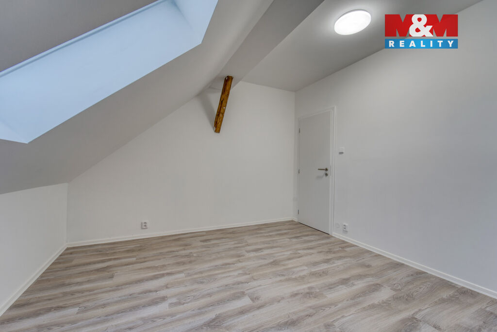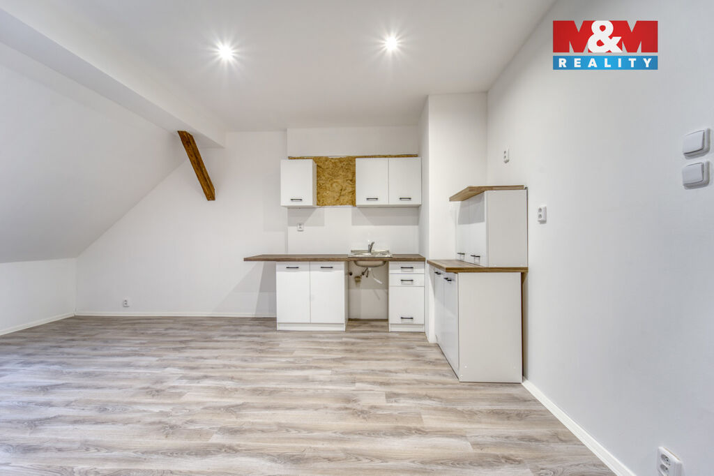 Nabízíme k prodeji světlý a moderní byt 3+kk o užitné ploše 67 m², umístěný ve 3. nadzemním podlaží nově zrekonstruované půdní vestavby cihlového domu přímo v centru obce Kdyně.