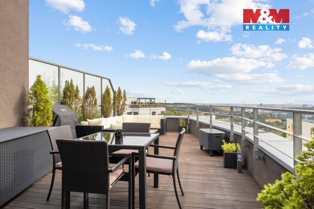 K bytu náleží terasa o rozloze 30 m² s překrásným výhledem, ideální pro relaxaci a zábavu.