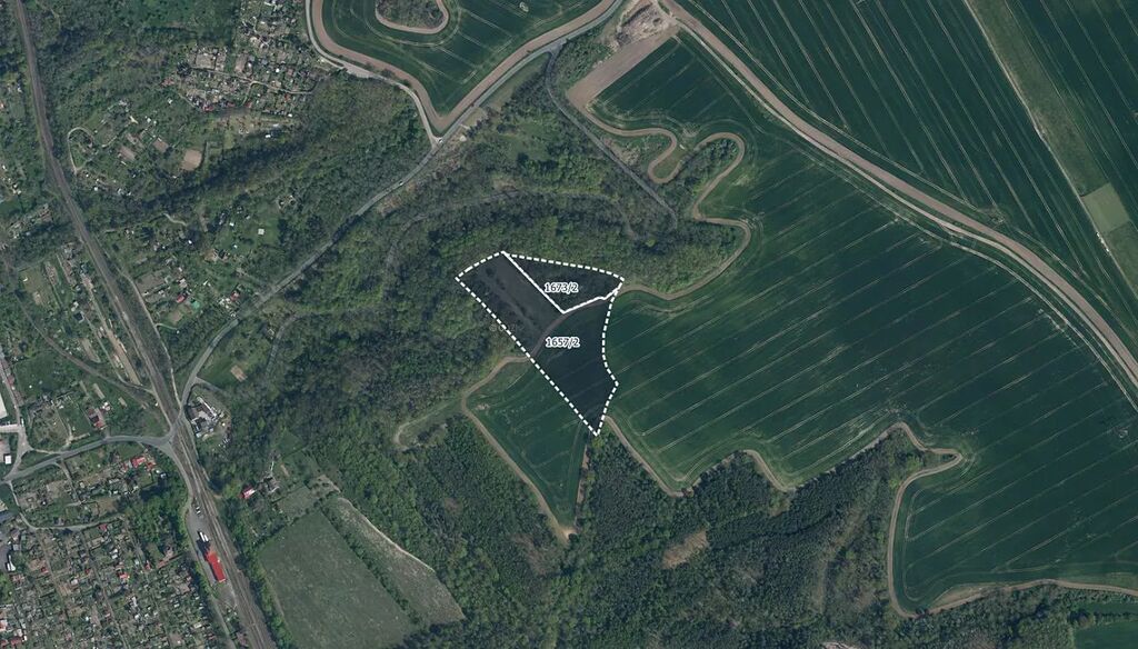 Společná výměra parcel je 47 666 m2. Vlastník na nich prodává nyní 15 889 m2 půdy. Z toho orná půda je 13 965 m2 a ostatní plocha 1 924 m2. Jako ostatní plocha je vedena parcela 1673/2.