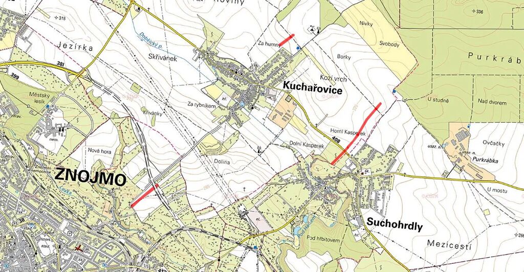 Kuchařovice: parc. č. 735/50, 742/89, 779/233, 780/100, 781/225, 803/80, 813/57, 813/139 a 814/73 na LV 1270.