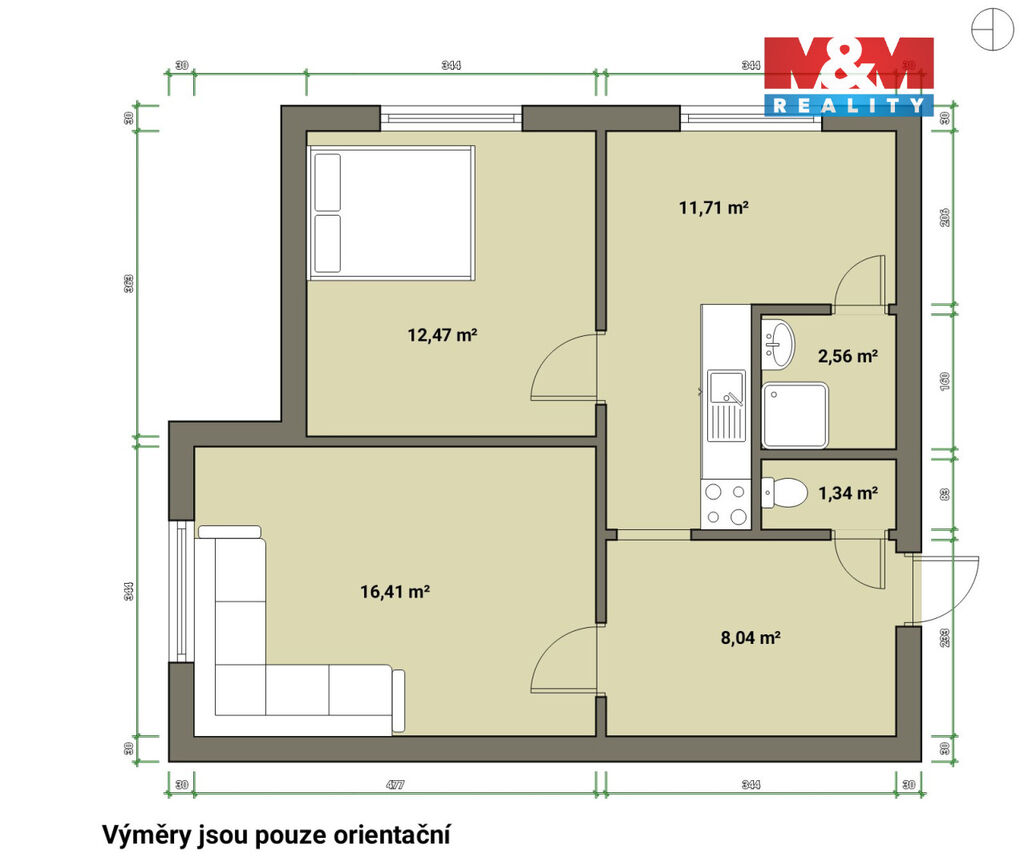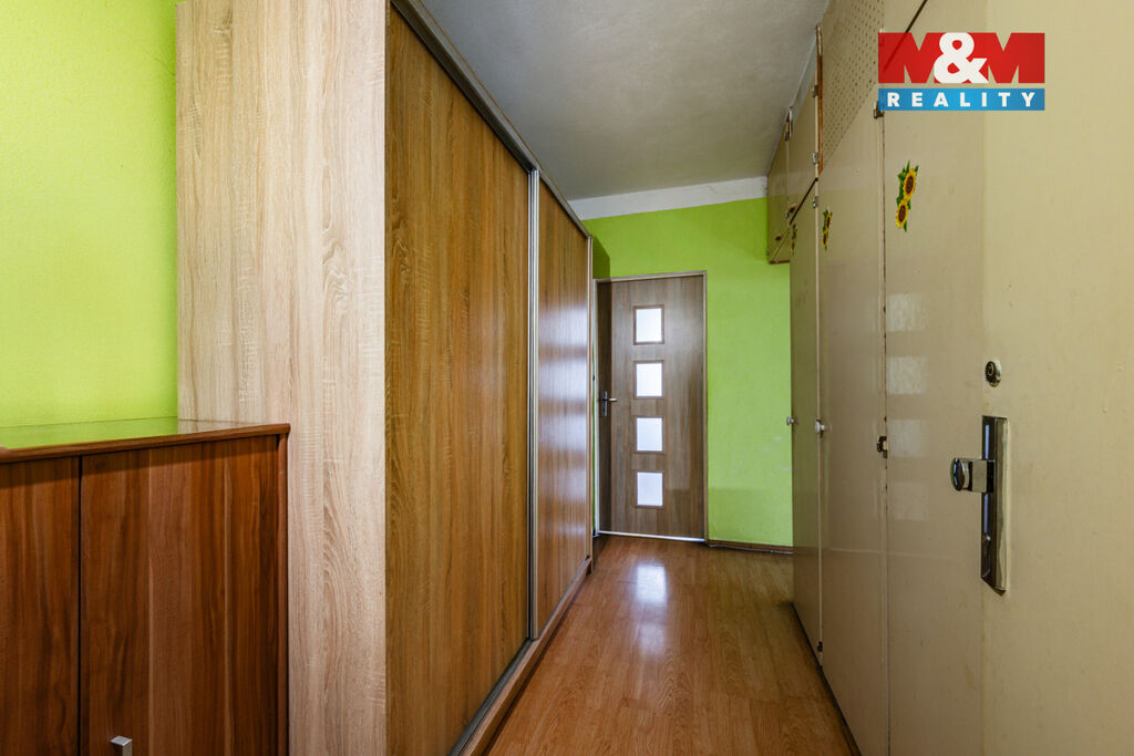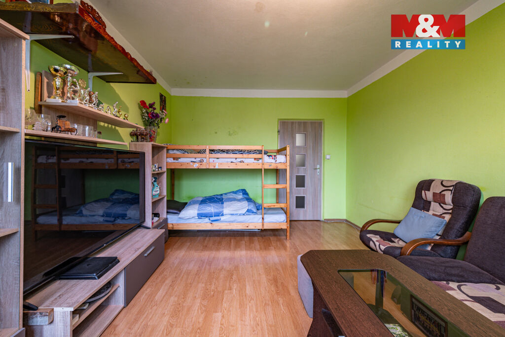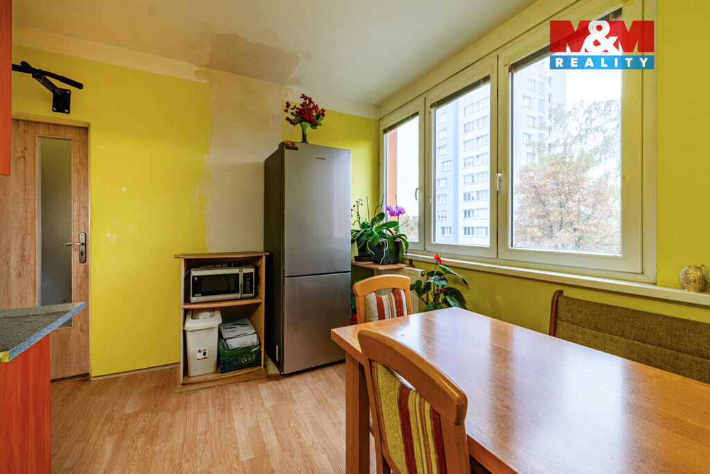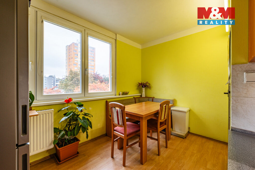 Dispozice zahrnuje obývací pokoj o velikosti 16,41 m², ložnici 12,47 m², další pokoj 11,71 m², kuchyň 8,04 m², koupelnu 2,56 m² a samostatné WC 1,34 m². Byt je ve velmi dobrém stavu, což umožňuje okamžité nastěhování bez nutnosti zásadních úprav, zároveň však poskytuje dostatek prostoru pro modernizaci podle vlastních představ. Součástí je také sklepní kóje v podzemním podlaží, která nabízí praktické úložné místo pro sezónní vybavení, sportovní potřeby či jiné věci.