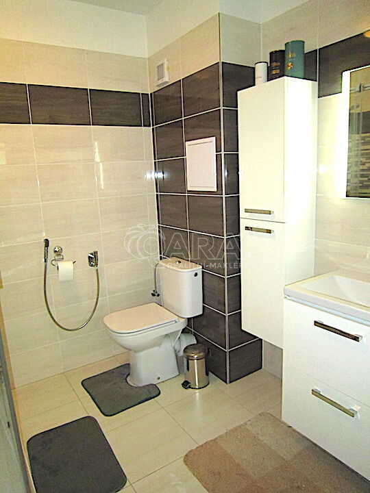 Zprostředkujeme Vám k pronájmu velmi hezký, moderně vybavený byt 2+kk, o celkové výměře a to včetně terasy 70,9 m2 v klidné lokalitě Svémyslice – Praha východ. Byt se nachází ve třetím, posledním, nadpodlaží cihlové novostavby, jehož součástí je také parkovací místo, které je umístěno přímo před domem. Vlastní byt sestává z předsíně z které se dostaneme do koupelny, ložnice a dále pak do obývacího pokoje, propojeného s kuchyňským koutem, jehož kuchyňská linka je vybavena kvalitními spotřebiči. Nedílnou součástí bytu je terasa, která vybízí k odpočinku a pohledem do okolí plné zeleně. Tato rozvíjející se lokalita, která nabízí již zmiňované okolí plné zeleně, nedaleké dětské hřiště a také rybník, nabízí také velmi příjemnou dostupnost do našeho hlavního města. Nedaleko od domu je MŠ, basketbalové hřiště, obecní úřad, kostel a autobusová zastávka ze které se pohodlně dostaneme do Letňan nebo na Černý most. Dva kilometry od domu je nádraží Zeleneč, odkud se vlakem dostaneme za 20 minut na Hlavní nádraží do Prahy, nebo za 13 minut do lokality Praha – Vysočany. K ceně nájemného 19.000,-Kč je potřeba připočíst 4.000,-Kč za celkové poplatky. Vzhledem k těmto všem atributům, doporučujeme tento hezký byt v příjemné lokalitě s dobrou dostupností k pronájmu.