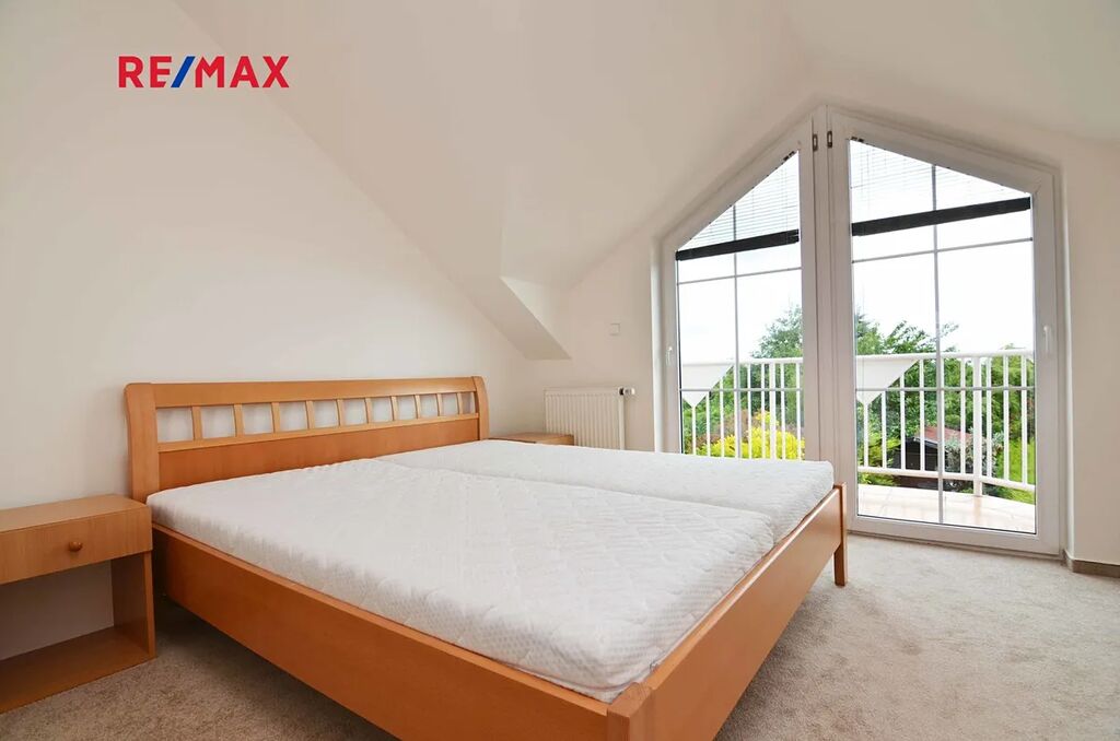 V prvním poschodí domu dvě samostatné ložnice a samozřejmostí je též koupelna se dvěma umyvadly, vanou a WC. Parkování možné na pozemku u domu.
