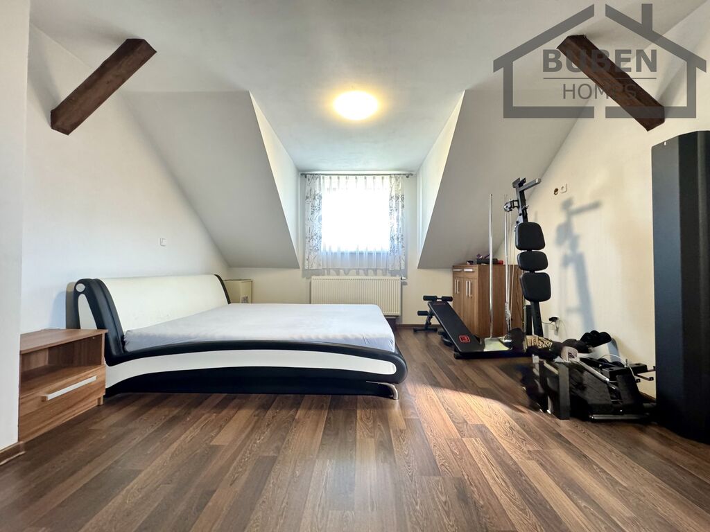 Ve 2.NP je z půdního prostoru nově vybudována prostorná bytová jednotka 5+1 o užitné ploše 165 m2. Do tohoto bytu se vstupuje schodištěm z domu, je zde zároveň samostatný vstup po venkovním schodišti ze dvora. Tento byt tvoří vstupní schodiště, prostorná chodba, koupelna, samostatné WC, 4 ložnice (jedna ložnice s koupelnou s WC, jedna se šatnou), prostorný obývací pokoj a kuchyň s jídelnou. Dále je zde k dispozici prostorný půdní, pochozí prostor, vhodný ke skladování.
