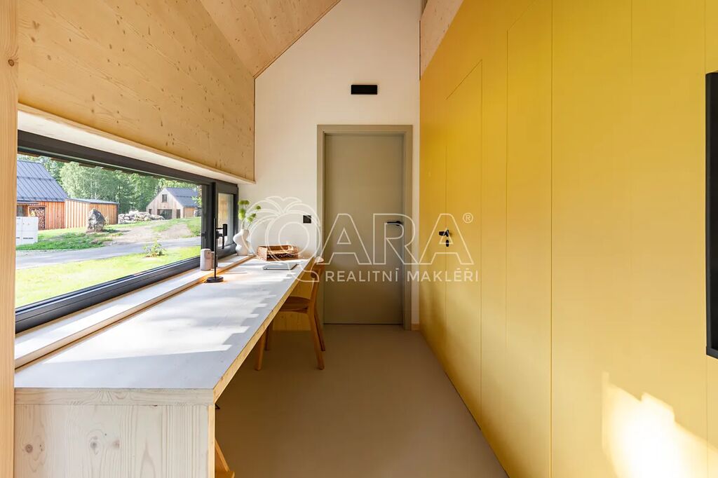 Co se parametrů domu týká, tak jeho celková užitná plocha je 109 m2, dále k němu přísluší téměř 26 m2 velká terasa a přibližně šestimetrový zahradní domek, kde si uskladníte kola, lyže a veškeré potřebné vybavení pro pobyt na horách. Dům pak obklopuje zahrada o výměře 659 m2 a bez problémů zde zaparkujete.