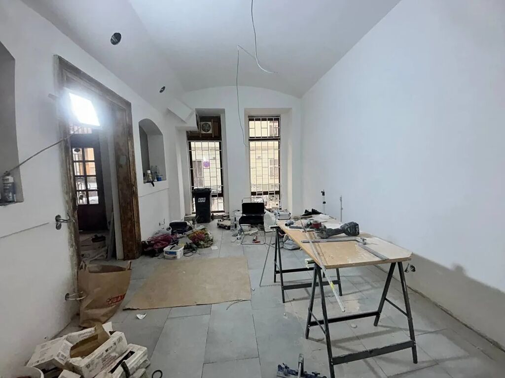V této chvíli probíhá v prostoru rekonstrukce (nové dveře, topné radiátory, dlažba, elektroinstalace, malá kuchyňka, bojler, bílé stěny).