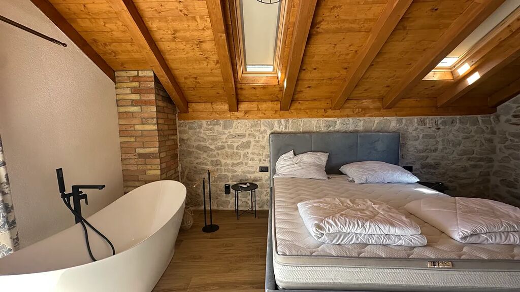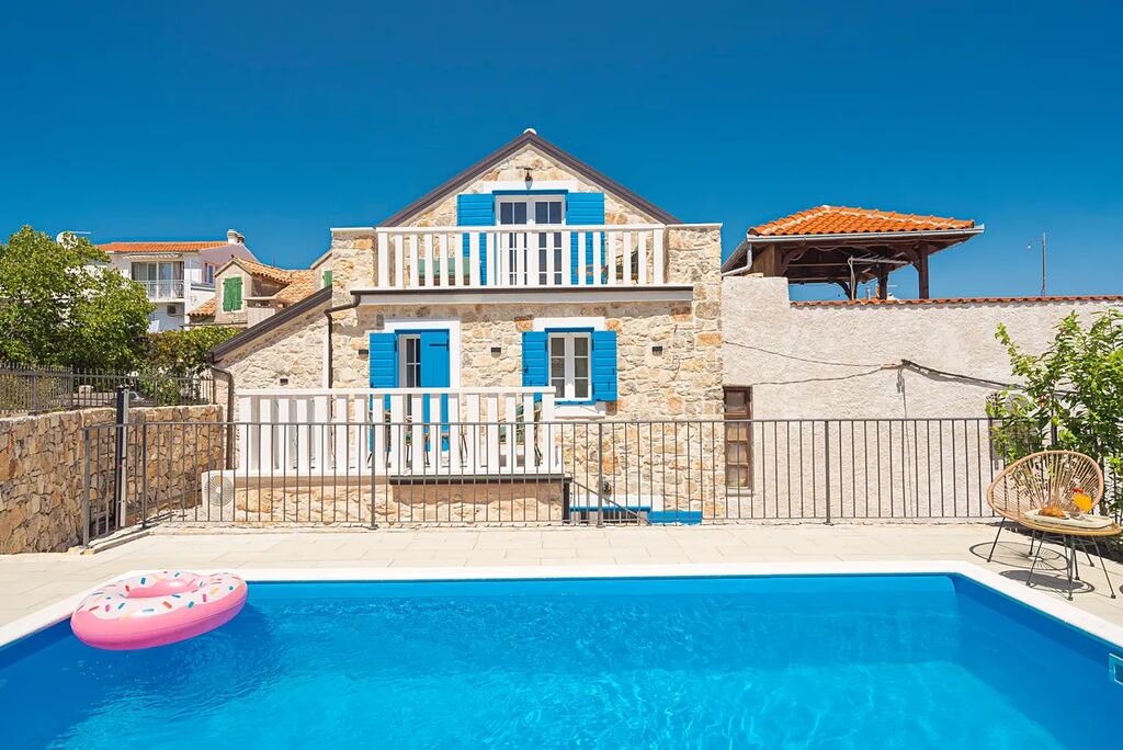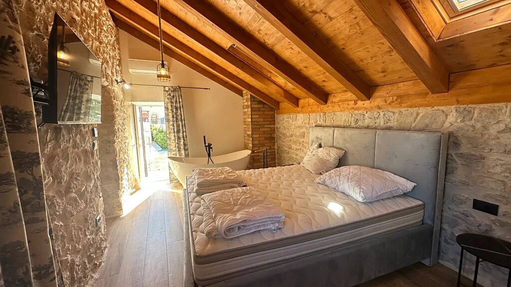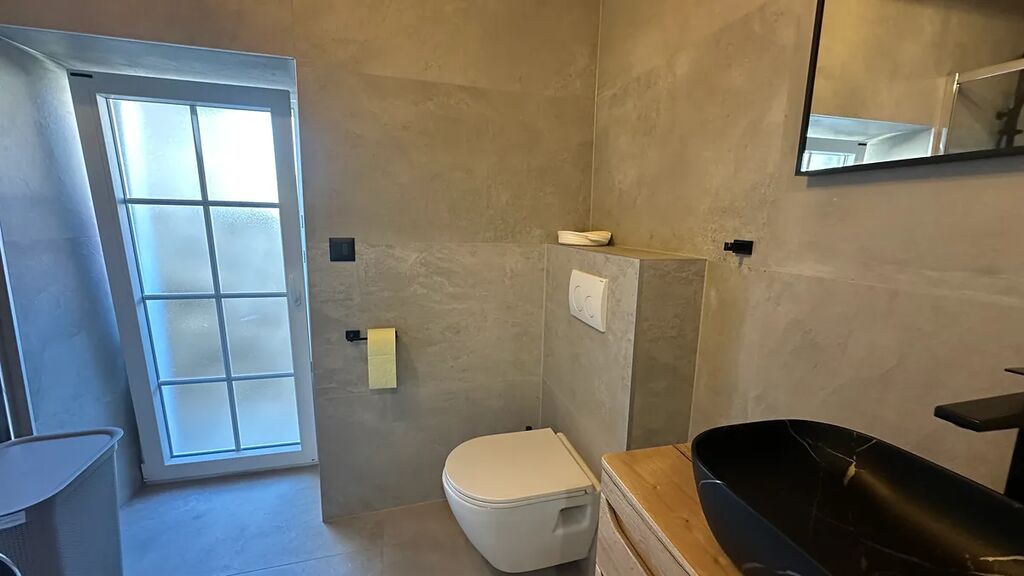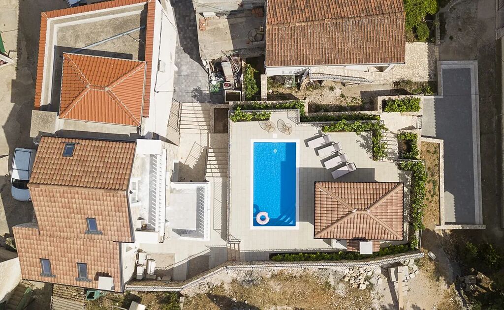 Nádherný, autentický samostatně stojící kamenný dům se zahradou, bazénem a výhledem na moře v centru Tribunje. Dům je třípatrový s celkovou užitnou plochou 137,91 m². V roce 2024 byl kompletně zrekonstruovaný v dalmatském stylu s použitím vysoce kvalitního vybavení a nábytku. Přízemí se skládá z kuchyně, obývacího pokoje, jídelny s vnitřním krbem/grilem a vinným sklepem, toalety a úložné místnosti. Vnitřní schodiště vede do prvního patra, kde se nachází chodba, koupelna a dvě ložnice, přičemž každá ložnice má vlastní terasu. V podkroví se nachází prostorná ložnice s koupelnou a terasou s výhledem na dvůr, bazén a moře. Plocha pozemku je 438 m2 a dvůr je kompletně oplocený a upravený s parkovacím místem a velkou plochou na opalování kolem bazénu a krásným přístřeškem s venkovním grilem. Nábytek je kompletně zahrnut v ceně.