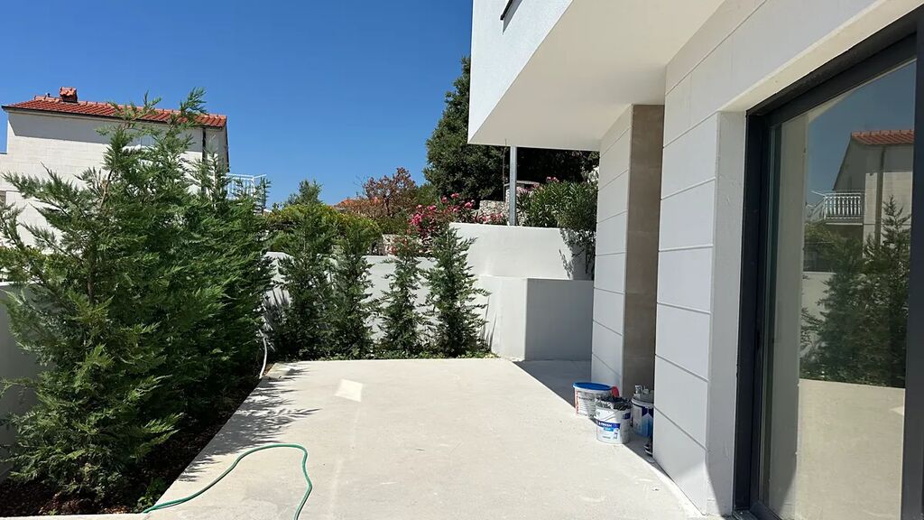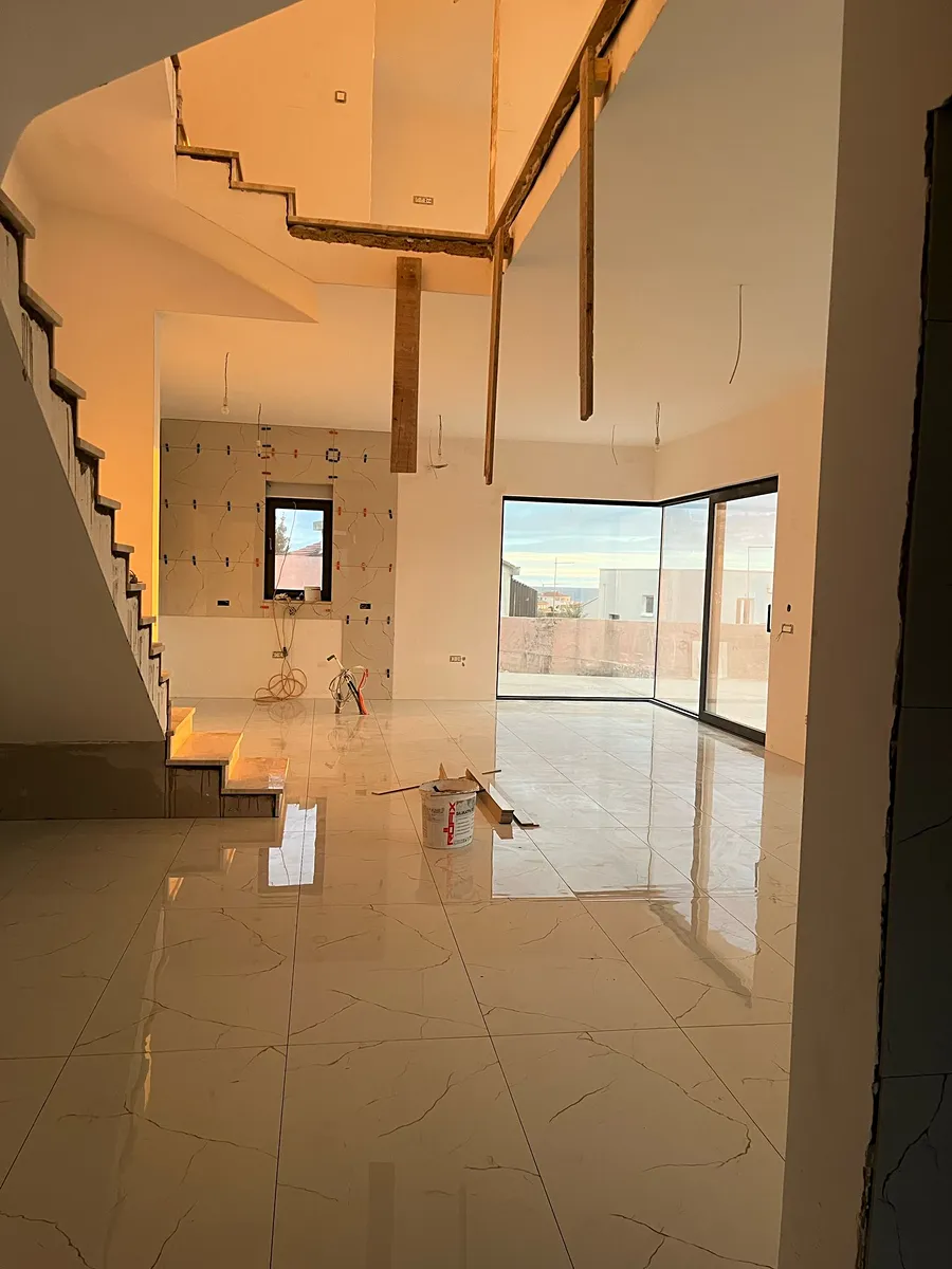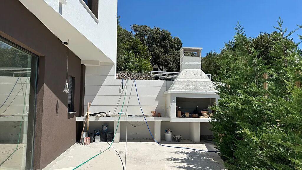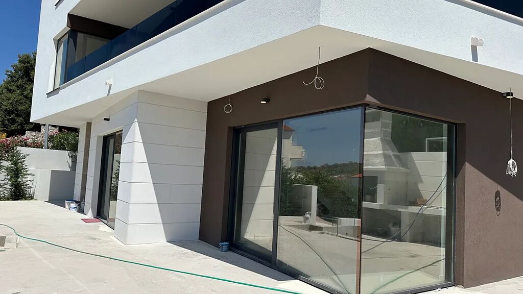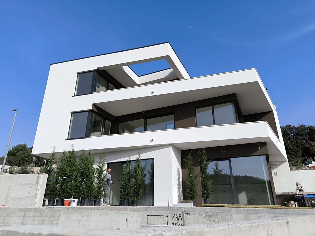 Výjimečná vila ve tvaru diamantu se nachází v zálivu Stivasnica, oblast Rogoznica. Nachází se pouhých 100 metrů od moře s nádherným výhledem na Jadran z každého patra a nachází se přímo v místě, kde se dvě místní silnice spojují do slepé uličky, aby byla snadno dostupná a zároveň s plným soukromím. Vstup do vily je ze severní strany, nachází se nad úrovní přízemí a pár kroků od parkoviště. V přízemí se nachází toaleta, komora, prostorný obývací pokoj s kuchyní a velkou terasou s úžasným nekonečným bazénem, letní kuchyně a venkovní jídelní kout. Umístění pohovky a jídelního stolu nabízí krásný výhled na moře přes velké skleněné posuvné dveře. Nekonečný bazén ve tvaru U má část jacuzzi s masážními čerpadly a je umístěn na stejné úrovni jako přízemí. Zvláštností interiéru je galerie s létajícími nerezovými schody až do druhého patra s velkými prosklenými posuvnými dveřmi v každém patře galerie. První patro nabízí dvě ložnice s vlastní koupelnou a dlouhou terasou, galerii, kterou lze využít jako tělocvičnu nebo knihovnu s velkými prosklenými dveřmi. Ve druhém patře se nachází hlavní ložnice s velkou terasou a jacuzzi, z níž si můžete vychutnat nádherný výhled. Každé patro má maximální výšku 3 m pro zvýšení luxusu této jedinečné vily. Výměra: 300 m2, 3 ložnice, 4 koupelny, podlahové vytápění, klimatizace, 2 parkovací místa, veřejný vodovod, kanalizace - bio septik, rok výstavby 2023.