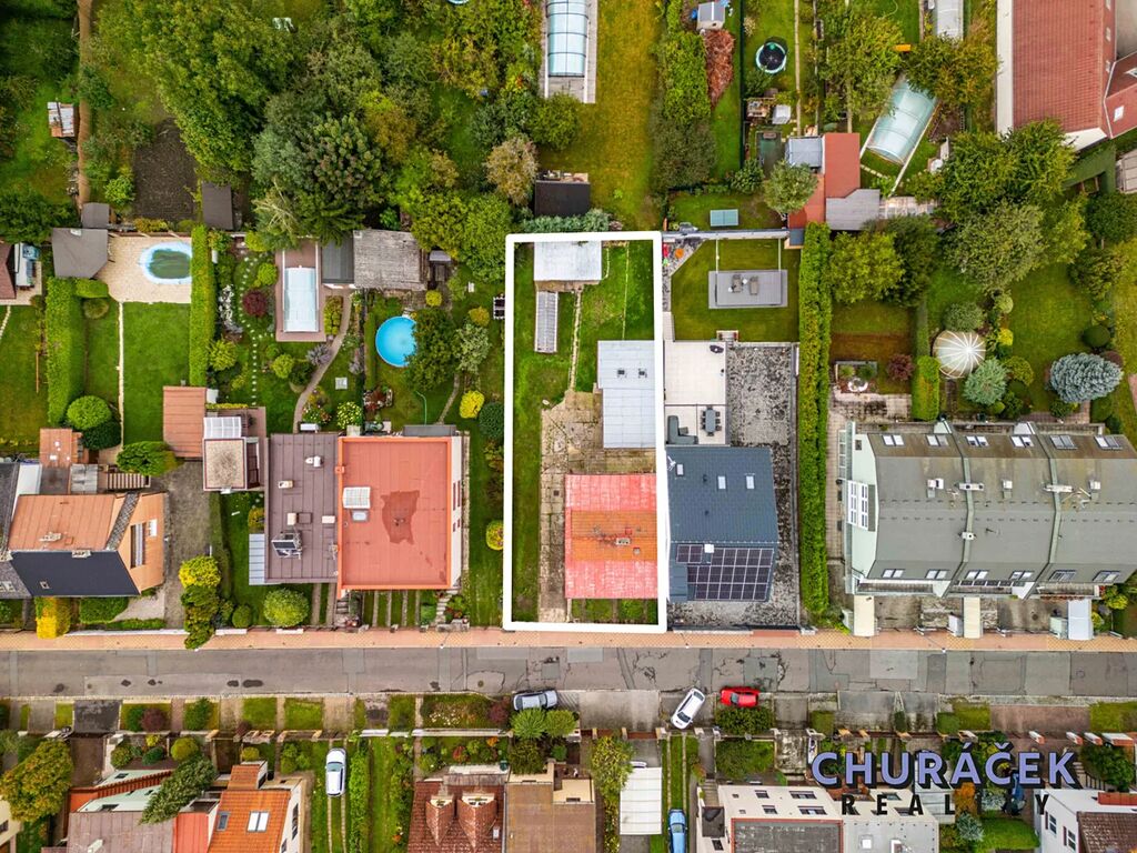 Celková výměra pozemku činí 455 m² a umožňuje zřízení terasy, bazénu či dětského hřiště. Klidná rezidenční ulice zajišťuje dostatek soukromí a příjemnou atmosféru bydlení.