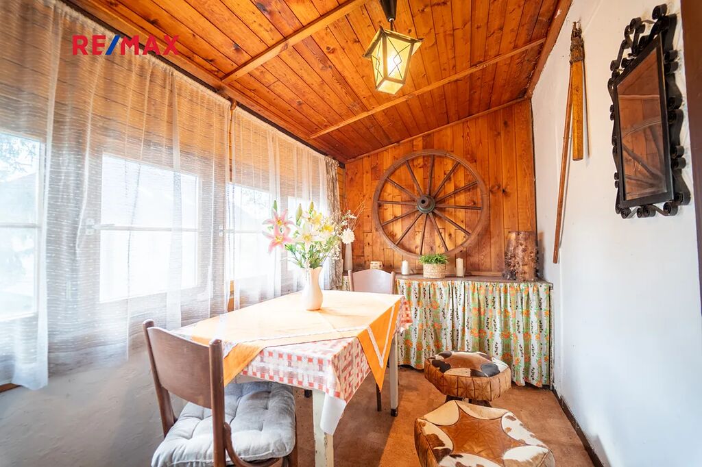 Dům tvoří 3 obytné místnosti - obývací pokoj se vstupem do koupelny, kuchyně se spižírnou a udírnou, též útulná ložnice.