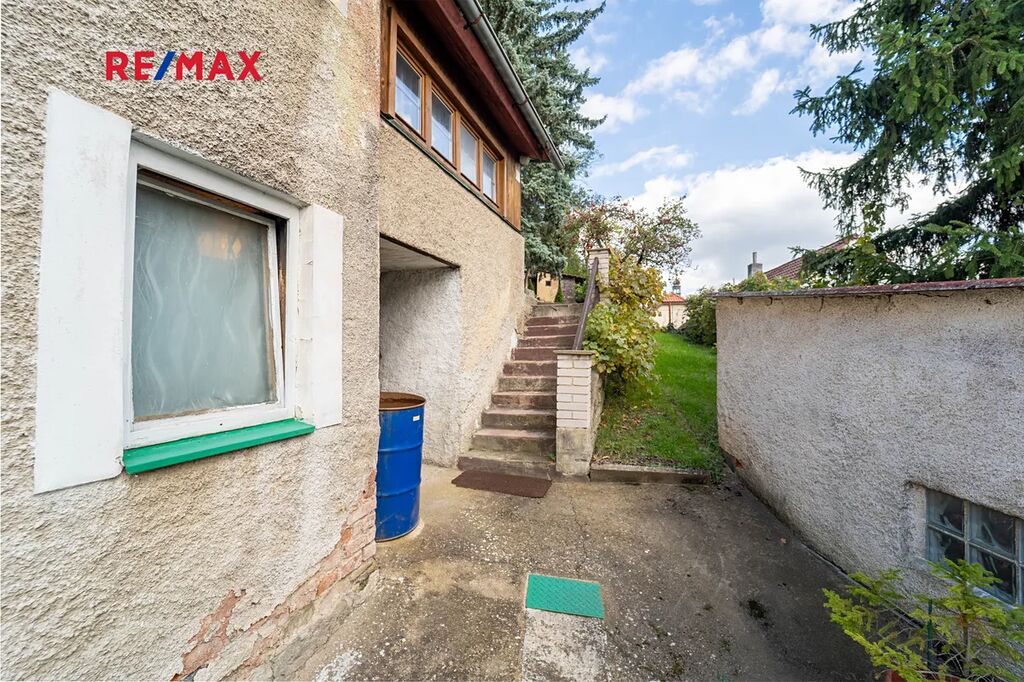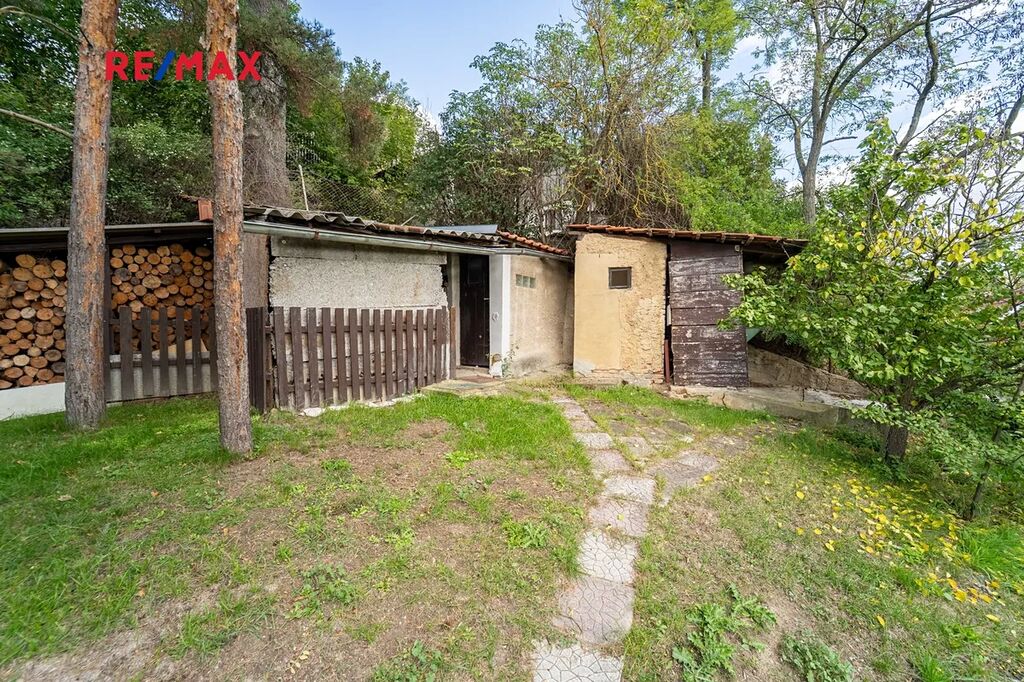 Pod domem u cesty je zděná garáž.