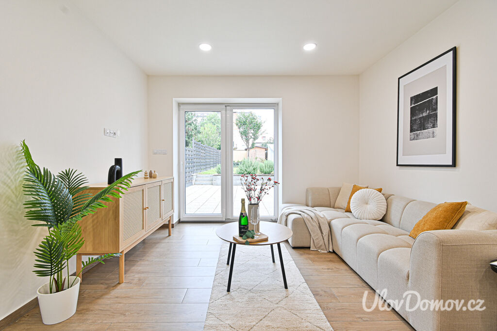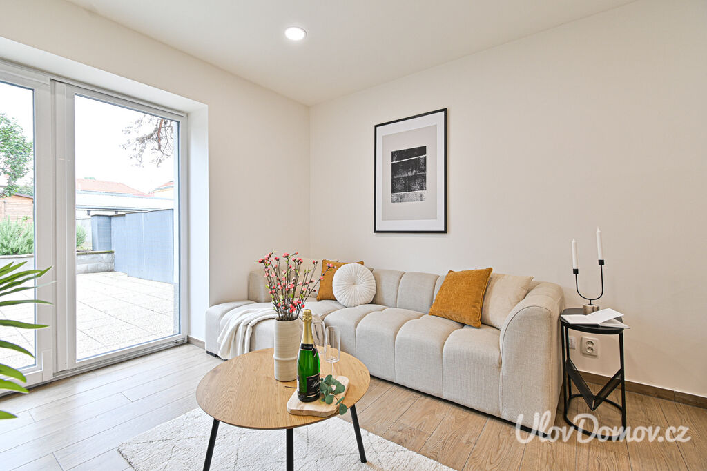 Ve výhradním zastoupení majitele nabízíme ke koupi bytovou jednotku 3+kk o podlahové ploše 85 m2 – polovinu dvojdomu. K bytu dále náleží terasa se zahradou o výměře 115 m², pracovna, kolárna/sklad a úložný prostor v podkroví. Dům, který prošel v roce 2020 kompletní rekonstrukcí, je rozdělen na 2 bytové jednotky. Technický stav odpovídá novostavbě (z původního domu zůstaly jen obvodové konstrukce).