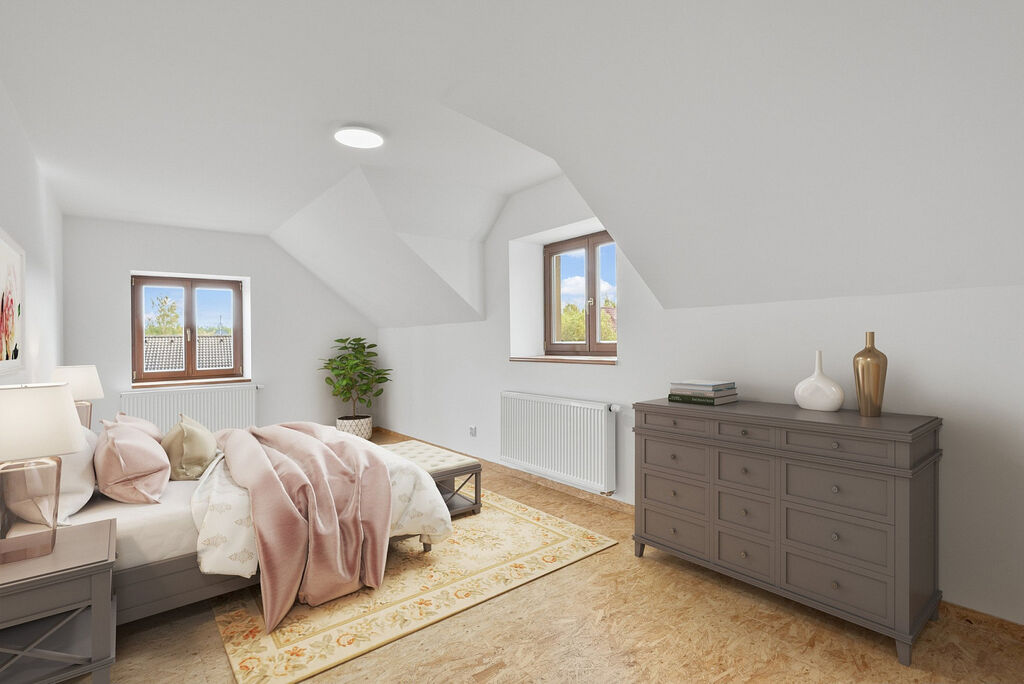 Dům tvoří dvě téměř samostatné bytové jednotky – v přízemí dispozici 2+1, v podkroví pak prostorné 3 (4)+kk. Díky tomu může skvěle posloužit jako dvougenerační bydlení, nebo pohodlný domov s možností pronájmu druhé části, či zázemí pro velikou rodinu s nárokem na prostor.