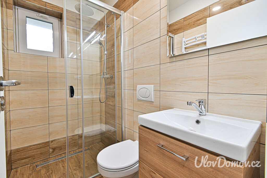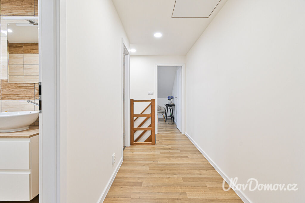 Ve výhradním zastoupení majitele nabízíme ke koupi polovinu dvojdomu o podlahové ploše 85 m2. Na katastru vedeno jako bytová jednotka, ke které náleží terasa se zahradou o výměře 115 m², pracovna, kolárna/sklad a úložný prostor v podkroví.