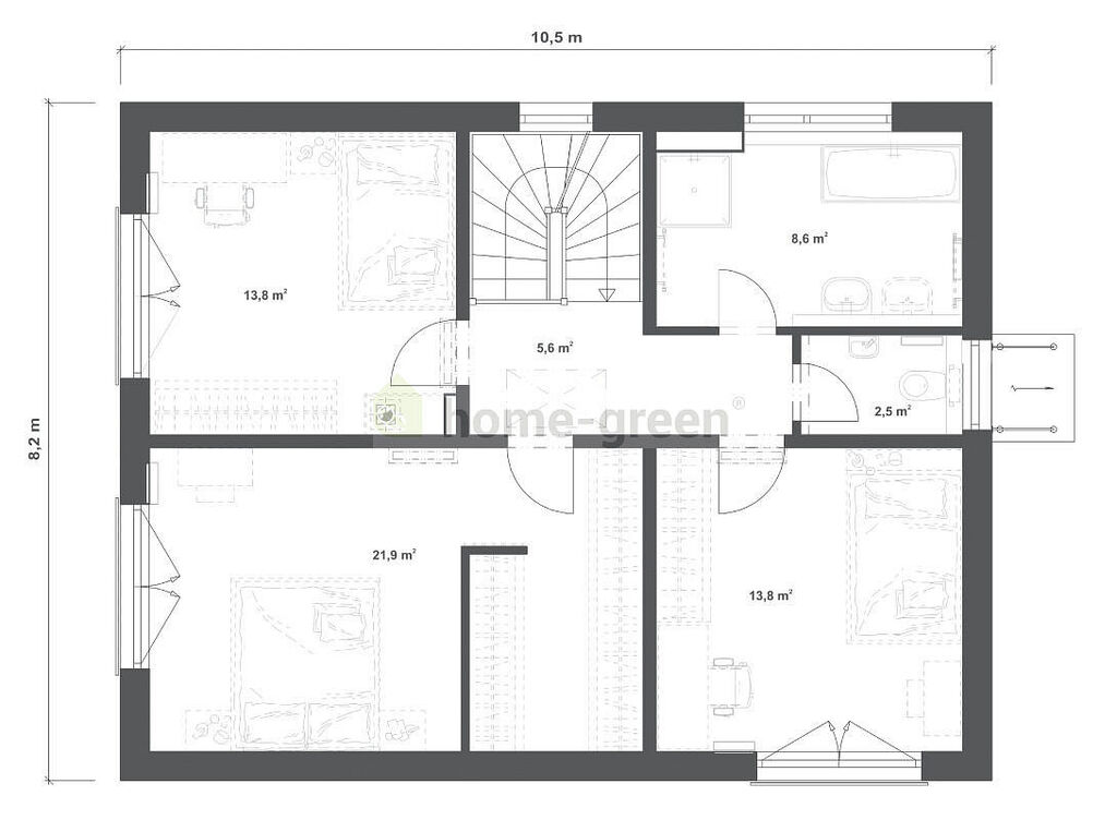 Dům Family 135 zaujme moderním designem, který je ideální také pro užší pozemky. Tento kompaktní dům nabízí promyšlenou otevřenou dispozici s velkými prosklenými plochami, které se rozprostírají přes obě podlaží, tím přinášejí dostatek světla do obývací, jídelní i kuchyňské části. Velké prosklené dveře vedou přímo na prostornou terasu, což je ideální místo pro relaxaci a společenská setkání. V poschodí se nachází ložnice s krásným výhledem a další dvě prostorné místnosti, které poskytují klid a naprosté soukromí. Tento dům dokonale spojuje moderní estetiku s praktickými potřebami rodiny, což z něj činí skvělou volbu pro pohodlné rodinné bydlení. Provedení domu - dispozice je 5 + kk. Rozměry domu 10,54 x 8,21 m.
