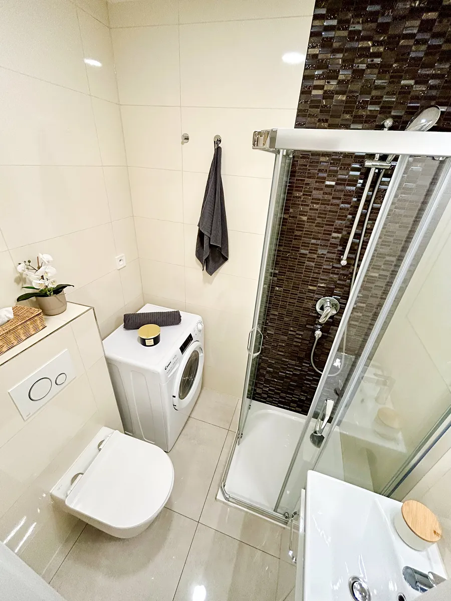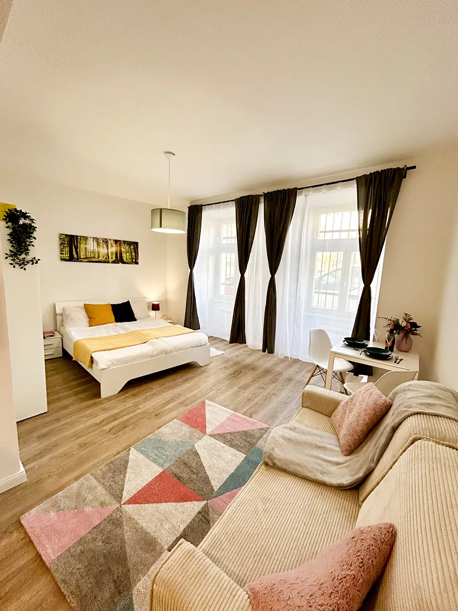 Byt o dispozici 1+kk je plně zařízen a připraven k okamžitému nastěhování. Součástí je kuchyňská linka včetně vestavných spotřebičů, pohodlný rozkládací gauč, jídelní stůl se židlemi, postel, úložné prostory a koupelna se sprchovým koutem. Interiér byl navržen s důrazem na funkčnost a nadčasový design.