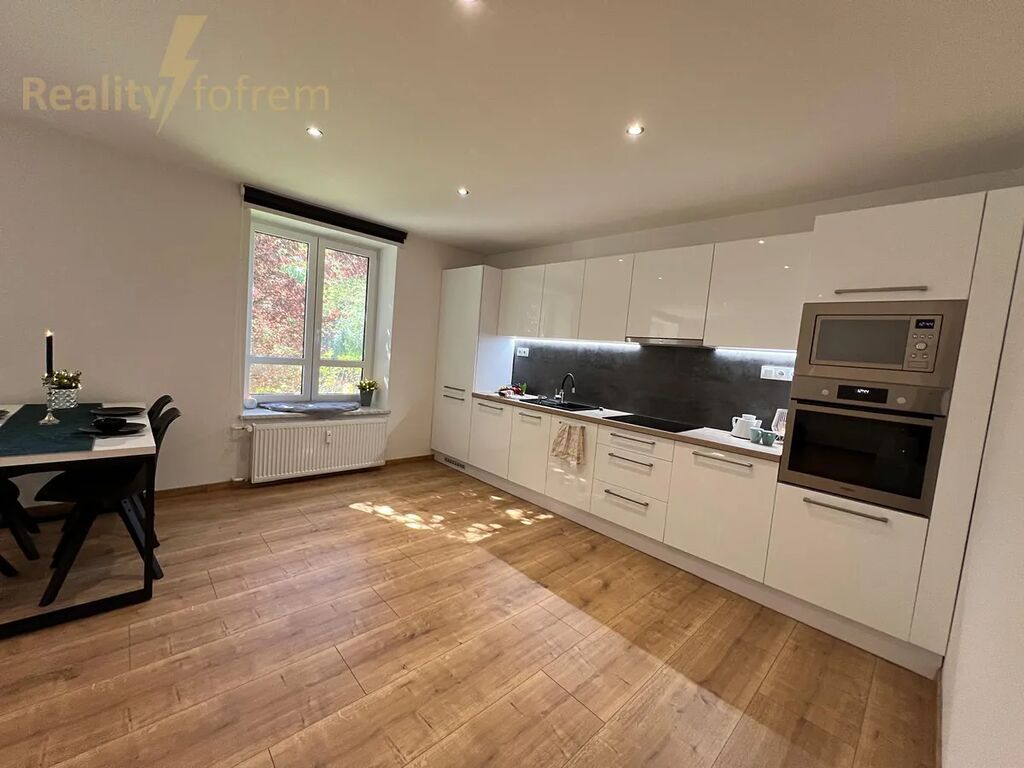 Byt je zařízený, moderní kuchyňská linka ,lednice, myčka, indukční deska, trouba, vestavěné skříně na míru v ložnici i předsíni , rozkládací gauč , skřínky, televize.