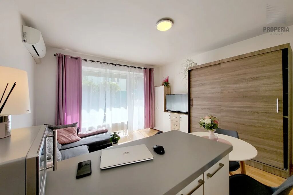 Nabízíme k pronájmu krásný a světlý byt o dispozici 1+kk a podlahové ploše 38 m² v oblíbené lokalitě Kamechy. Byt je velmi útulný, vybavený klimatizací a díky vlastní zahrádce nabízí dokonalé propojení pohodlí bytu s relaxací venku.