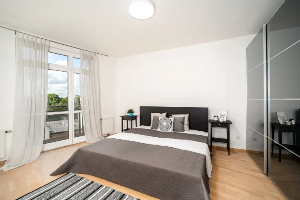 Dovolujeme si Vám nabídnout k pronájmu světlý, částečně zařízený byt o dispozici 3+kk a velikosti obytné plochy 90 m2, s terasou, balkónem (3,5 m2 + 4,8 m2) a garážovým stáním, v luxusní rezidenci Zvonařka na Vinohradech.