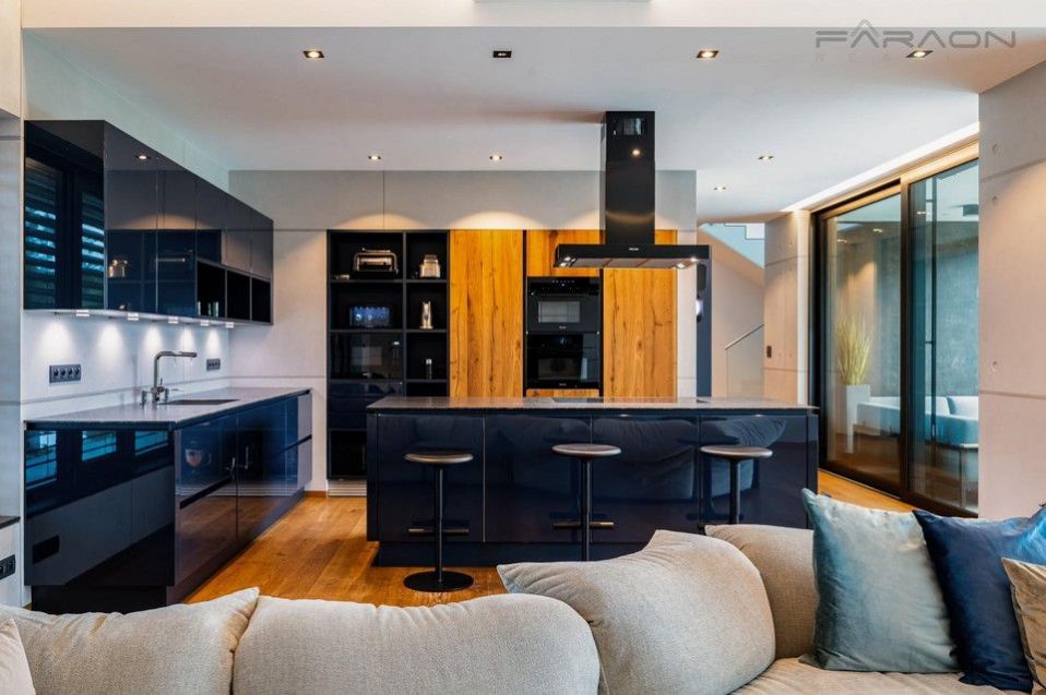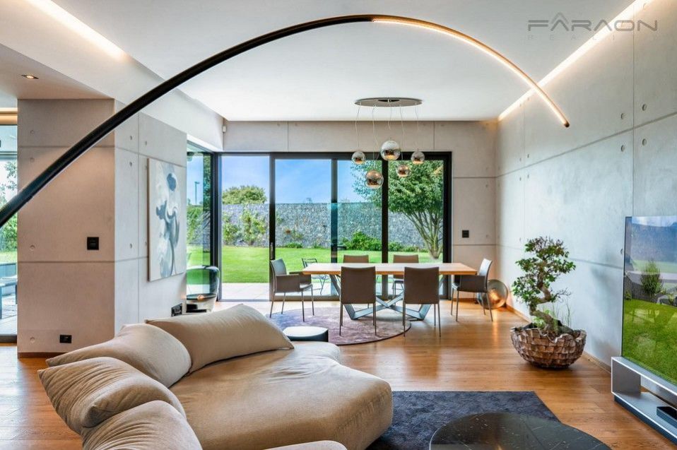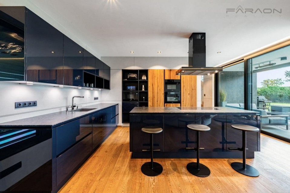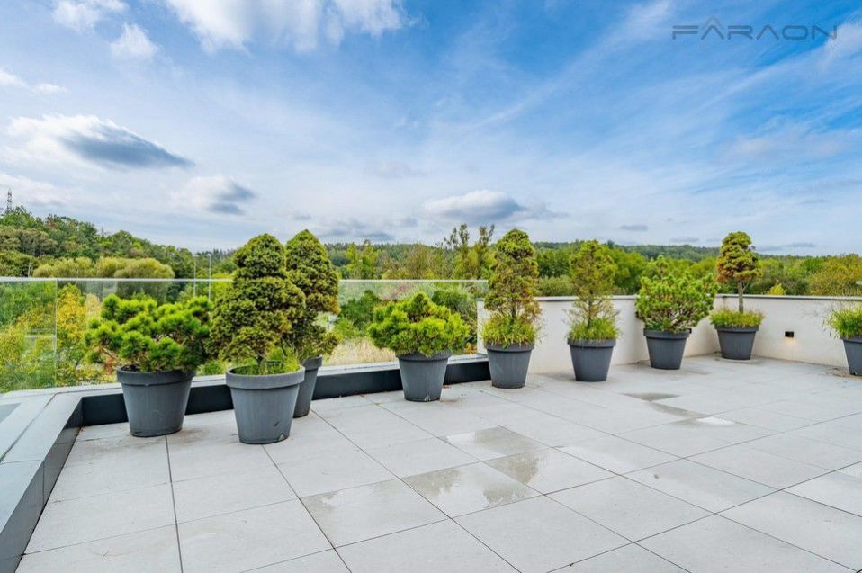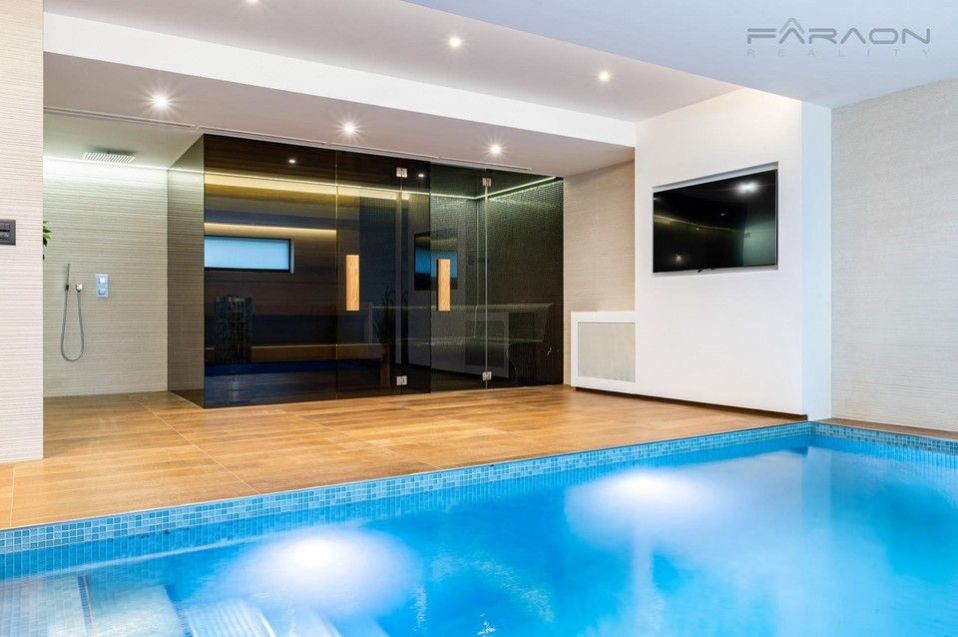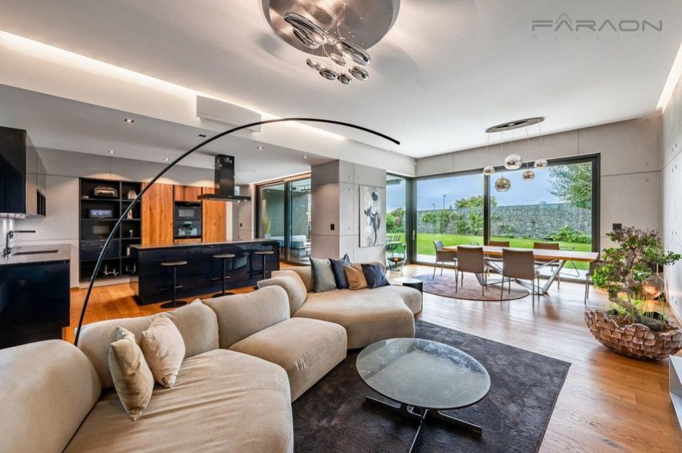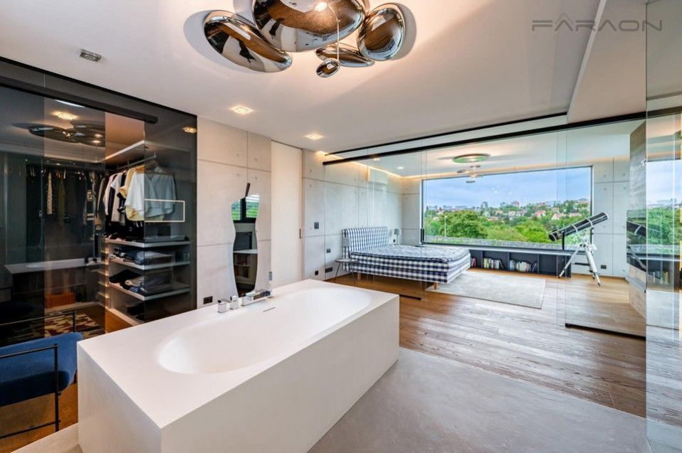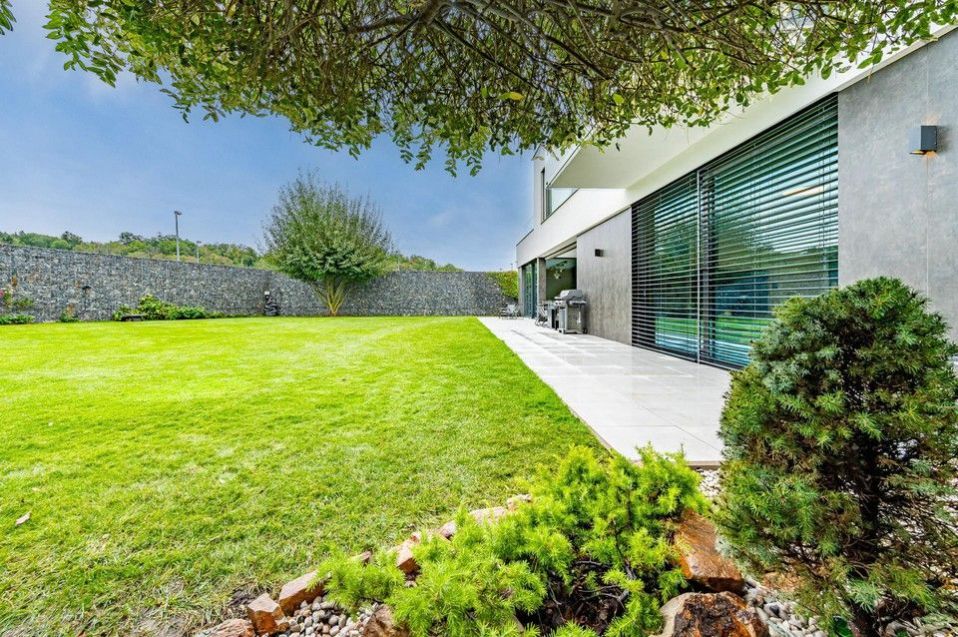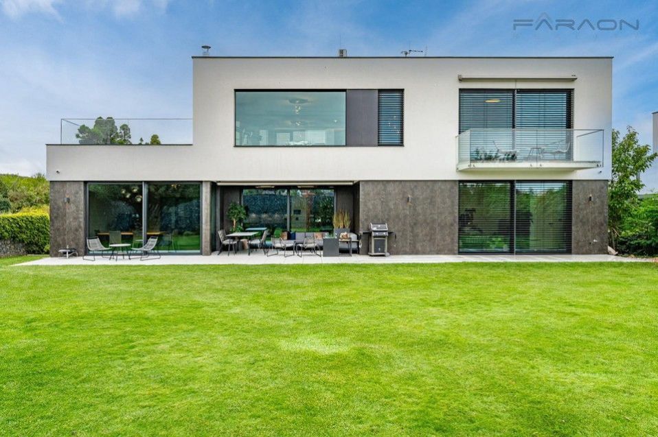 Dispozice vily je promyšlená a nabízí komfortní bydlení pro náročné. Dům je rozložen do tří podlaží, elegantně propojených designovým osvětleným schodištěm. Na dvou nadzemních podlažích se nacházejí tři ložnice, z nichž master ložnice tvoří exkluzivní privátní prostor s koupelnou s prostorovou vanou, sprchovým koutem a šatnou. Další dvě ložnice mají každá vlastní šatnu a koupelnu, což zajišťuje maximální soukromí pro všechny členy rodiny. Vstupní podlaží tvoří srdce domu reprezentativní otevřený koncept obývacího pokoje s jídelnou a kuchyní, s přímým vstupem na prostornou terasu vybavenou letním posezením s vyhříváním, ideální pro užívání i během chladnějších měsíců. Terasu obklopuje pečlivě udržovaná zahrada s automatickou závlahou. V -1 podlaží se nachází luxusní SPA zóna s vyhřívaným bazénem s protiproudem a podvodní roletou, technologií aktivního kyslíku bez chlóru, finskou a tureckou saunou, relaxační zónou a pokojem pro hosty. Dům dále disponuje garáží pro dva vozy + motocykl, technickou místností s prádelnou a kompletním moderním zázemím.