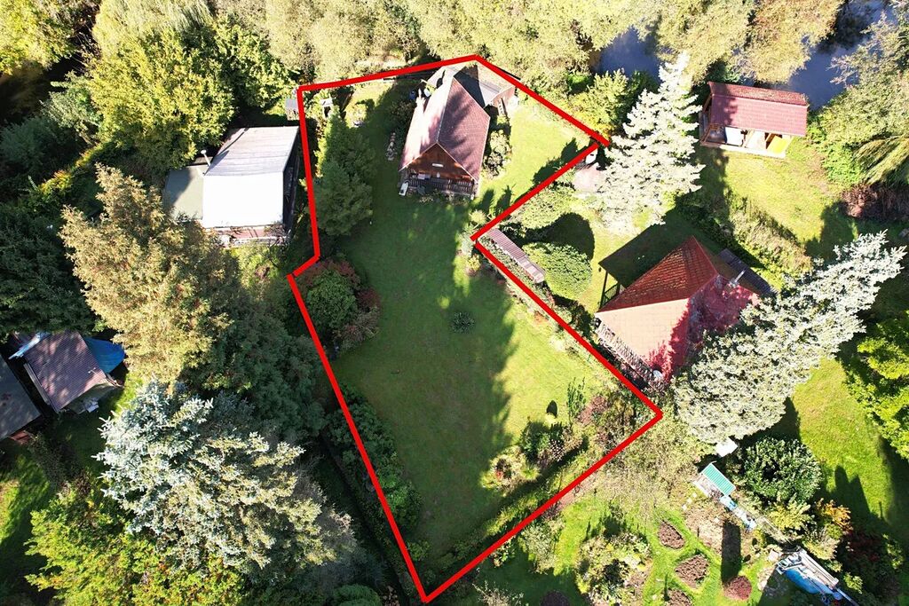 Dřevěná kůlna na nářadí v těsné blízkosti chaty.