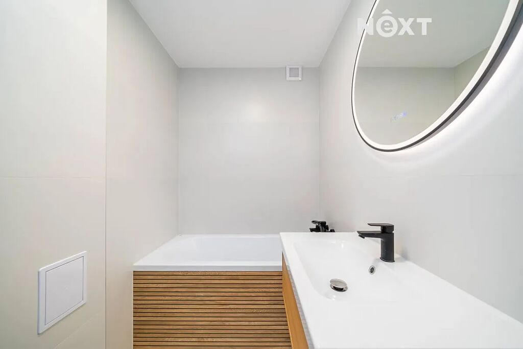 • kuchyňská linka s elektrospotřebiči v záruce (el. trouba, el. varná deska, odsavač, myčka, lednice s mrazákem) • umyvadlová skříňka • koupelnové zrcadlo se stmívačem, protizamlžovací funkcí a digitálními hodinami • moderní stropní svítidla v celém bytě