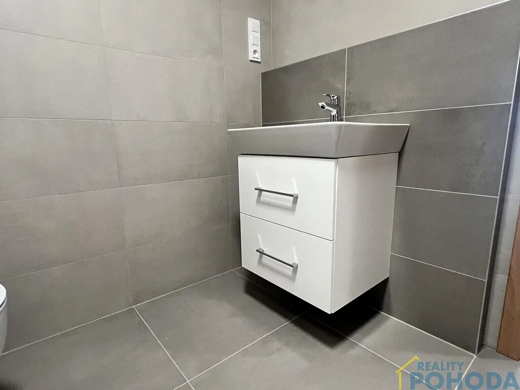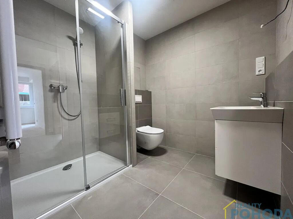 Byt se skládá z prostorného obývacího pokoje s kuchyňským koutem, kde bude umístěná nová kuchyňská linka na míru včetně vestavěných spotřebičů jako je vestavěná trouba, sklokeramická varná deska, digestoř, myčka nádobí, kameninový dřez s baterií (fotka kuchyně je pouze ilustrační, kuchyň je již ve výrobě). V obývacím pokoji je krásné velké francouzské okno se vstupem na terasu a vlastní oplocenou zahrádku s výměrou 30 m2. Je to unikátní byt s vlastní zahrádkou, kde můžete trávit svůj volný čas a relaxovat po náročném dni.
