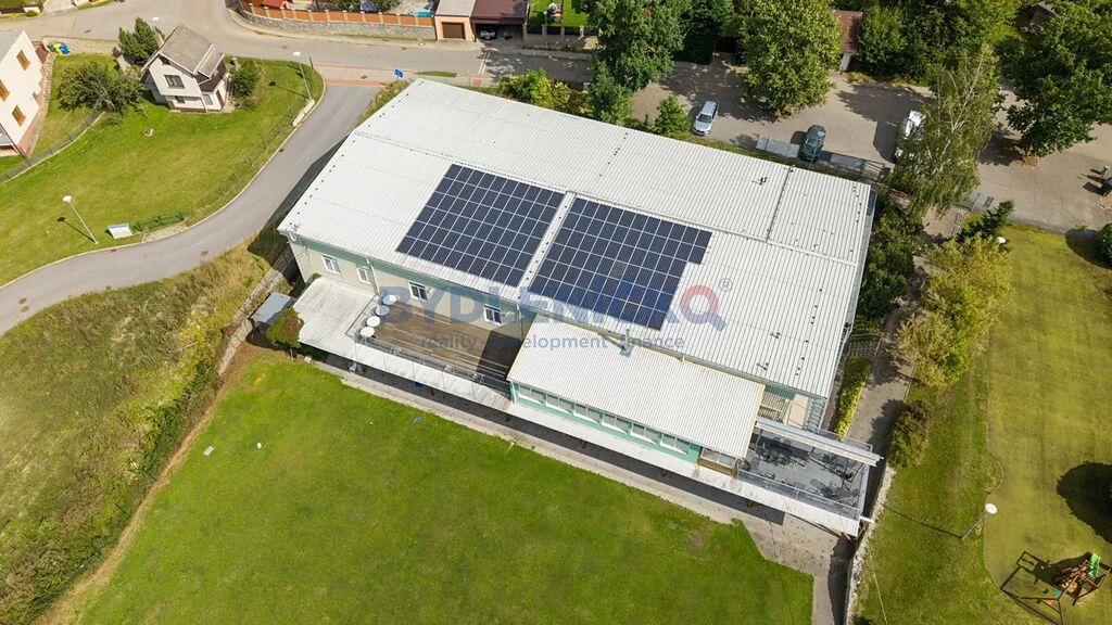 Na střeše haly je navíc umístěna FVE o výkonu 30 kWh, což zajišťuje velmi zajímavý roční pasivní příjem i díky staré smlouvě na výkup přebytku. K nemovitosti je kompletní projektová dokumentace. Voda a kanalizace je obecní. Vytápění je zajištěno 2 plynovými kotli. Elektřina z vlastní FVE.