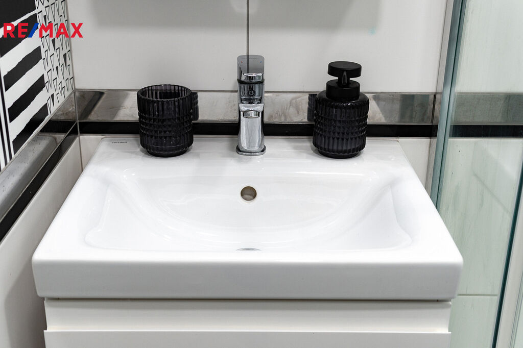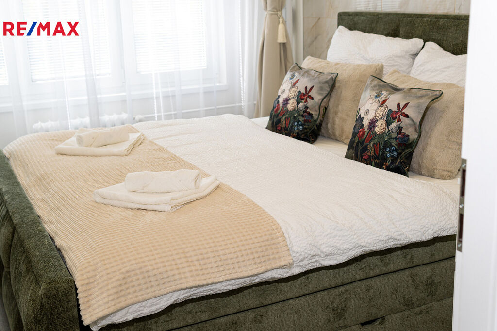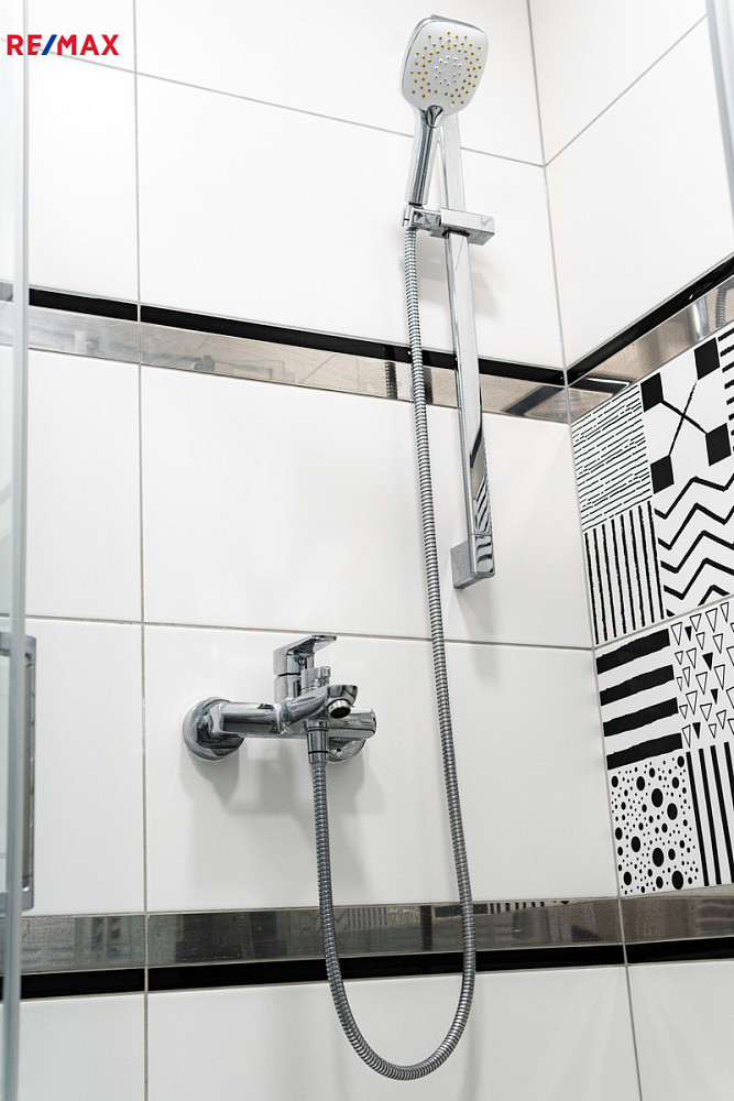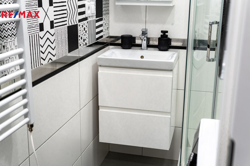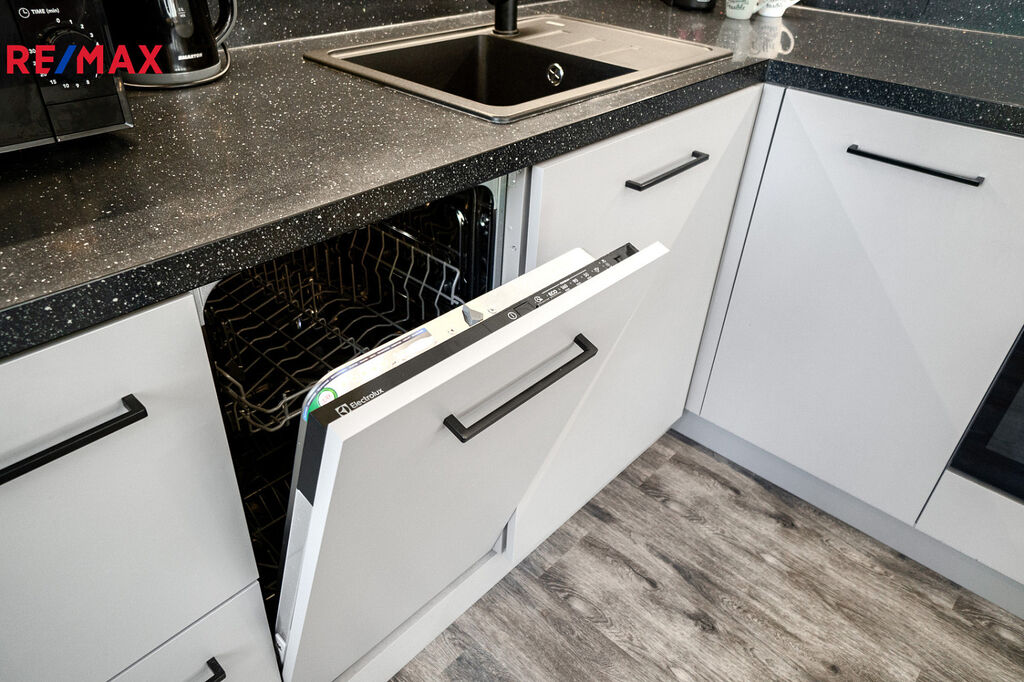 Byt prošel kompletní proměnou – vše je zcela nové: moderní kuchyňská linka s vestavnými spotřebiči, koupelna s pračkou a sušičkou, nové podlahy, dveře, elektroinstalace i sanita.