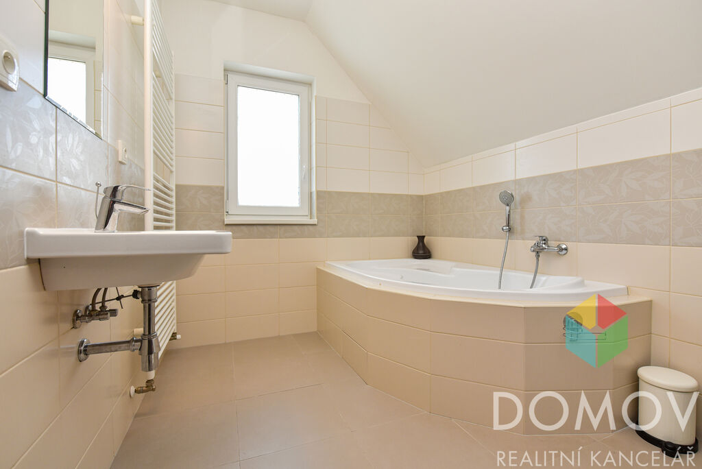 V přízemí se nachází obývací pokoj s jídelnou, praktická kuchyně s vestavnými spotřebiči, koupelna se sprchovým koutem a WC, komora a technická místnost. Po dřevěném schodišti se vychází do podkroví, kde najdete ložnici, dva dětské pokojíčky a koupelnu s vanou. Z pokojíčků je vstup na balkon, odkud se otevírá nádherný výhled do okolí, včetně výhledu na kostel v Králově Dvoře.