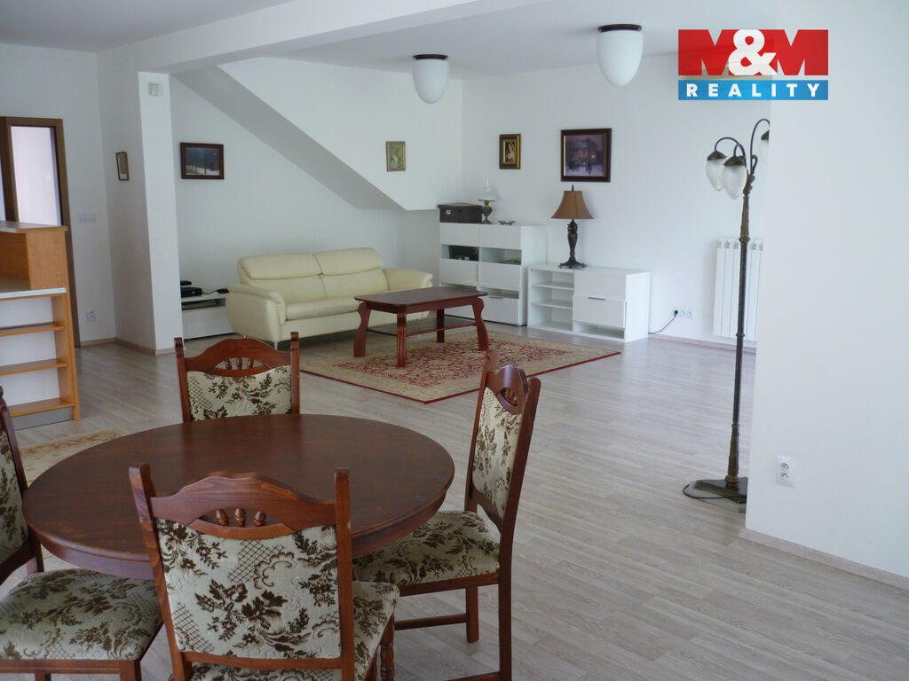Nabízíme k pronájmu atraktivní, úsporný rodinný dům, 5+kk, 200 m2, zahrada 670 m2, se 2 koupelnami, nedaleko dvou přírodních rezervací. Příjemná rezidenční lokalita s kompletní občanskou vybaveností. V těsné blízkosti se nachází jezdecký klub a dětské hřiště, dále cyklostezky. Krátký dojezd autem k centru Modřan a 30 min do centra Prahy. Přízemí domu je tvořeno obývacím pokojem s kuchyní, vybavenou veškerými spotřebiči, lednicí a barovou chladničkou, dále jídelním prostorem, šatnou, komůrkou, koupelnou se sprchovým koutem a WC, vstupem na zahradu a garáží. Patro domu se skládá ze 3 ložnic a samostatné pracovny, koupelny s vanou, samostatného WC a schodišťové haly. V domě je klimatizace. Samostatnost domu s rozlehlou oplocenou zahradou zaručuje maximální soukromí. V zahradě je místo na posezení a grilování, velké vyžití pro děti - k dispozici houpačky a trampolína. Dům je elektronicky zabezpečen. Měsíční nájemné 62 000 Kč, dále provize RK, energie si platí nájemník.