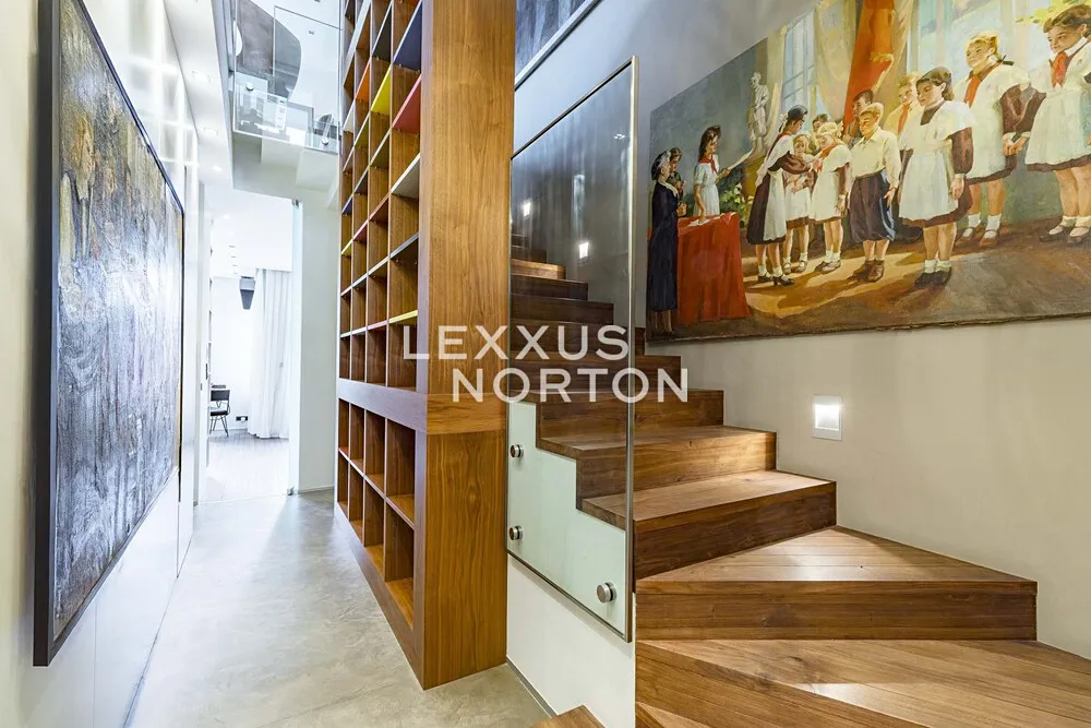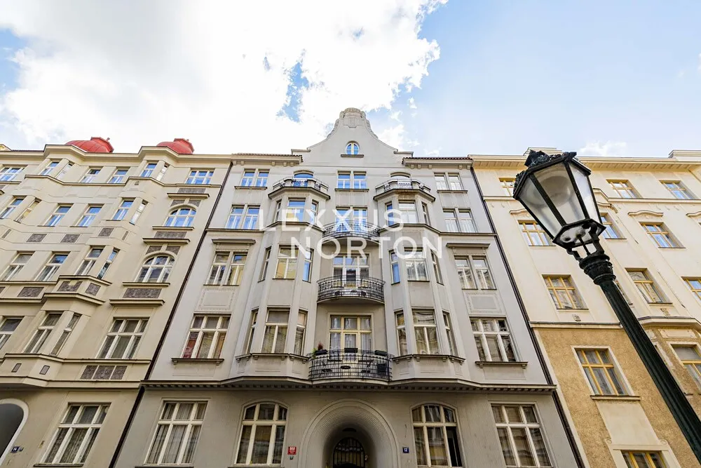 Nabízíme prostorný mezonetový byt o dispozici 4+kk s jižně orientovanou terasou a kouzelným výhledem na věže a střechy Starého Města. Byt se nachází v nejvyšších patrech elegantního secesního domu, jen pár kroků od Pařížské ulice a také nábřeží Vltavy. Výjimečná část Starého města, která si dodnes zachovala své kouzlo a dopřává Vám pěší pohyb v centru metropole.