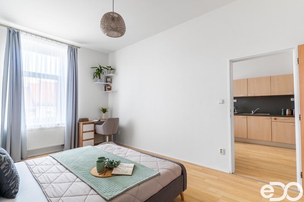 Byt je v dobrém stavu, s novými rozvody a podlahami starými přibližně 10 let. Vytápění i ohřev vody zajišťuje vlastní domovní kotelna (dokončení rekonstrukce domu v roce 2025). Dispozici tvoří obývací pokoj s kuchyňským koutem (bez myčky), ložnice, koupelna se sprchovým koutem a WC. K bytu je možné přikoupit sklep č. 205/102 o velikosti cca 2,5 m² za cenu 190 000 Kč. Optický kabel je již doveden na chodbu. Výměry v tomto inzerátu jsou orientační.